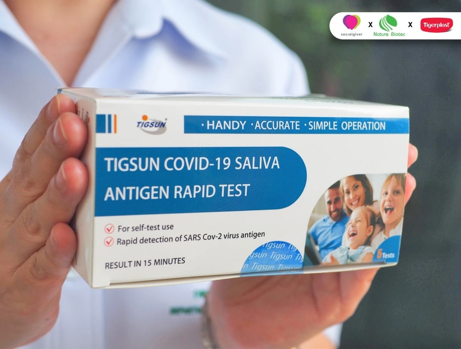 Socialgiver, Nature Biotec และ Tigerplast ได้ร่วมมือกันในการขึ้นทะเบียนกับหน่วยงาน องค์การอาหารและยา (อ.ย.) และนำเข้าชุดตรวจโควิด-19 (ATK) แบบน้ำลาย ประสิทธิภาพสูง ยี่ห้อ Tigsun ในราคาย่อมเยาที่ 79 บาทต่อชุด (เลขที่ใบรับรองประเมินเทคโนโลยี T 6400530) โดยจำหน่ายผ่านทาง Socialgiver เพื่อร่วมสร้างพันธกิจสำคัญซึ่งเป็นส่วนหนึ่งในการขับเคลื่อนโครงการ Thailand Recovery Fund by Socialgiver (รายละเอียดโครงการ: https://socialgiver.com/give/thailand-recovery-fund)
