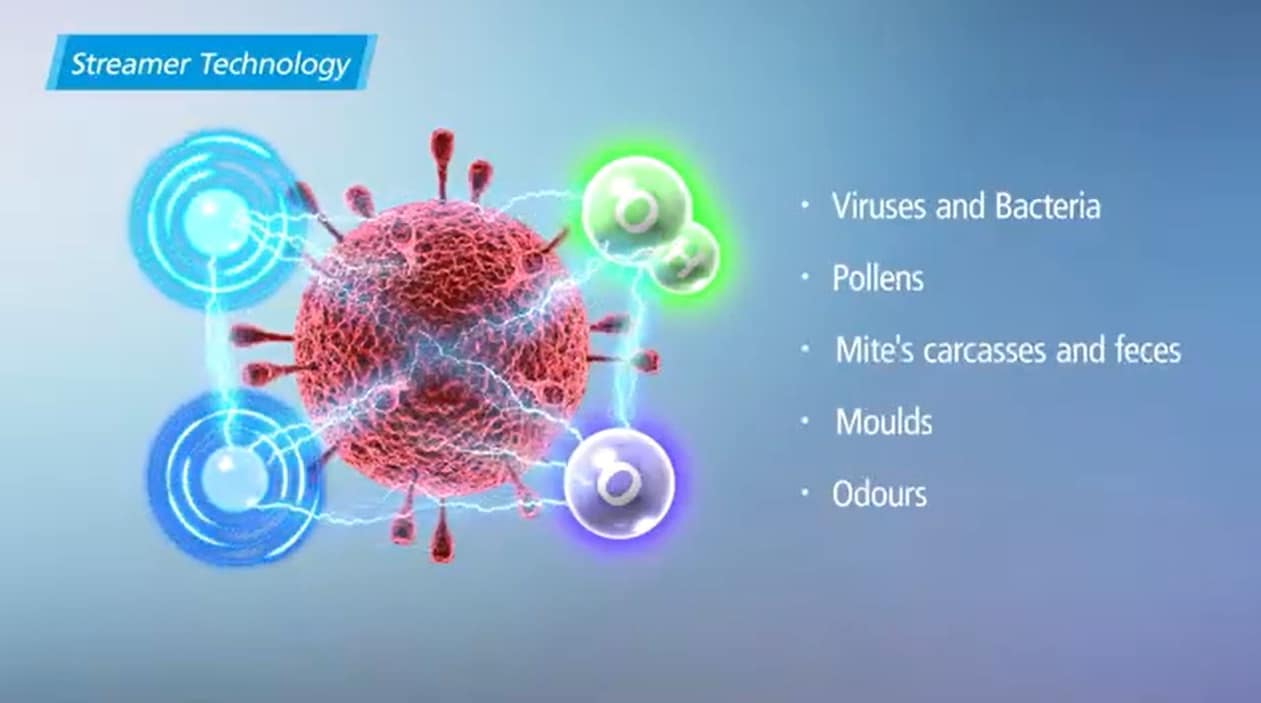 สำหรับเทคโนโลยีสตรีมเมอร์ คือเทคโนโลยีที่สามารถยิงกำจัดเชื้อโรคได้อย่างรวดเร็วและแม่นยำ ผ่านการปล่อยประจุพลาสม่าด้วยอิเล็คตรอนความเร็วสูง ที่ติดตั้งอยู่ในแอร์ และเครื่องฟอกอากาศ โดยสามารถยับยั้งเชื้อไวรัส แบคทีเรีย เชื้อรา สารเคมีอันตราย และสารก่อภูมิแพ้ได้ โดยพลังการยับยั้งมลภาวะต่าง ๆ นั้นเทียบเท่ากับความร้อนสูงถึง 100,000 C (เป็นการเปรียบเทียบความสามารถการยับยั้งอณุสารมลภาวะ ในการใช้งานจริงอุณหภูมิจะเป็นปกติ) จึงเป็นอีกหนึ่งทางเลือกง่ายๆ และสะดวก สำหรับผู้ต้องการสร้างอากาศสะอาดรอบตัวได้เอง โดยเฉพาะผู้ที่มีความกังวลเกี่ยวกับการแพร่ระบาดของเชื้อไวรัสโอไมครอนในระลอกใหม่นี้ได้เป็นอย่างดี