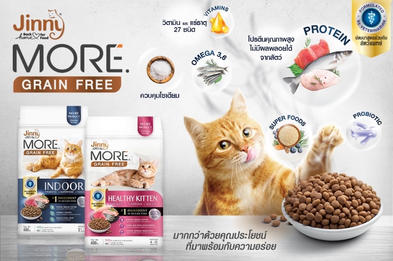 บริษัท อินเตอร์เนชั่นแนลเพ็ทฟู้ด จำกัด ในเครือ บริษัท เจริญโภคภัณฑ์อาหาร จำกัด (มหาชน) หรือซีพีเอฟ ผู้ผลิตและจำหน่ายอาหาร รวมถึงขนมสัตว์เลี้ยง แบรนด์ “JerHigh” (เจอร์ไฮ) ซึ่งประสบความสำเร็จในฐานะผู้นำด้านขนมสัตว์เลี้ยงอันดับ 1 ส่งออกจำหน่ายถึง 18 ประเทศทั่วโลก ต่อยอดแบรนด์ “Jinny” (จินนี่) เปิดตัวผลิตภัณฑ์อาหารเม็ดสำหรับแมว “Jinny More” (จินนี่ มอร์) ภายใต้แนวคิด “มากกว่าด้วยคุณประโยชน์ ที่มาพร้อมกับความอร่อย” สูตร Grain Free (เกรนฟรี) ปราศจากธัญพืช ถั่วเหลือง ข้าวโพด และข้าว ลดความเสี่ยงการเกิดอาการแพ้ และเป็นครั้งแรกในการนำ Probiotic (โพรไบโอติก) ช่วยส่งเสริมระบบการขับถ่าย ระบบภูมิคุ้มกัน และการดูดซึมอาหารได้ดียิ่งขึ้น ซึ่งได้รับความนิยมในตลาดอาหารแมวทั้งไทยและต่างประเทศ ครั้งนี้บริษัทฯ วิจัยและพัฒนาสูตรร่วมกับสัตวแพทย์ ด้วยการนำเนื้อปลาทะเลและไก่ที่เป็นแหล่งโปรตีนคุณภาพสูง พร้อมทั้งวัตถุดิบชั้นเลิศ อย่าง Superfood (ซูเปอร์ฟู้ด) วิตามินและแร่ธาตุ 27 ชนิด ที่จำเป็นต่อสุขภาพ ตลอดจนการควบคุมปริมาณโซเดียม ลดความเสี่ยงการเป็นโรคไต ที่สำคัญไม่มีผลพลอยได้จากสัตว์ อาทิ เล็บ ขน และกระดูก เพื่อเป็นทางเลือกสำหรับทาสแมวที่รักและใส่ใจในสุขภาพของสัตว์เลี้ยงเหมือนคนในครอบครัว