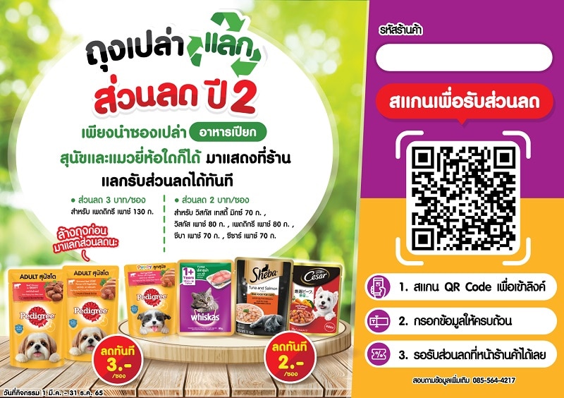 นายรัชกร เจนพัฒนพงศ์ ผู้จัดการทั่วไปประจำประเทศไทยและอินโดจีน มาร์สไทยแลนด์อิงค์ กล่าวว่า “หลังจากเปิดตัวโครงการ “แลกแล้ว-ลดเลย” ไปเมื่อปีที่ผ่านมา มีเจ้าของสัตว์เสี้ยงจำนวนมากนำถุงเปล่าอาหารสุนัขและอาหารแมวมาเข้าร่วมแคมเปญเพื่อนำเข้าสู่กระบวนการรีไซเคิล สำหรับการรีไซเคิลเพื่อกลับมาใช้ใหม่ นอกจากมีการดีไซน์บรรจุภัณฑ์ที่เป็นมิตรกับสิ่งแวดล้อมรองรับแล้ว เราจะต้องมีการส่งเสริมด้านการจัดเก็บ การคัดแยก โครงสร้างพื้นฐานสำหรับการรีไซเคิล และพฤติกรรมด้านการรีไซเคิลของผู้บริโภคด้วยเช่นกัน นี่คือเหตุผลที่เราขยายโครงการสู่ปีที่ 2”