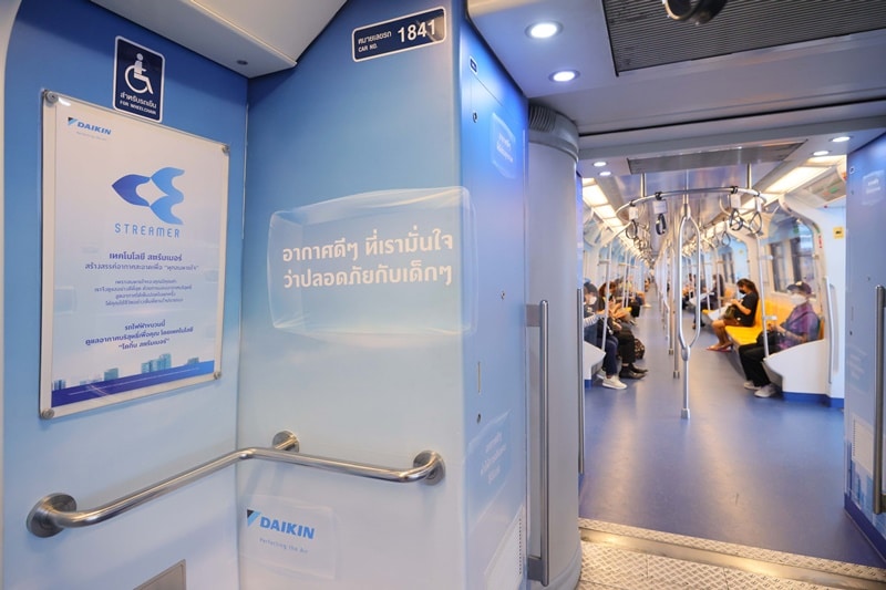 ยกระดับการใช้ชีวิตของคนไทยให้มีความมั่นใจมากยิ่งขึ้น ท่ามกลางสถานการณ์โควิด-19 ที่ยังคงแพร่ระบาดอย่างต่อเนื่อง เมื่อแบรนด์ผู้นำด้านนวัตกรรมอากาศสะอาด ภายใต้แนวคิด “Perfecting the Air” อย่าง “ไดกิ้น” (Daikin) ประกาศความร่วมมือกับรถไฟฟ้า “บีทีเอส” (BTS) ติดตั้ง “ไดกิ้นสตรีมเมอร์” เทคโนโลยีเอกสิทธิ์เฉพาะ “ไดกิ้น” (Daikin) ที่มีผลการทดสอบรับรองจากมหาวิทยาลัยชั้นนำในประเทศไทย* และประเทศญี่ปุ่น** ว่ามีคุณสมบัติช่วยยับยั้งเชื้อไวรัสโคโรนาสายพันธุ์ใหม่อย่างมีประสิทธิภาพสูงถึง 99.9%** ภายในรถไฟฟ้าขบวนพิเศษจำนวน 5 ขบวน ตั้งแต่วันที่ 1 เมษายนนี้ เป็นต้นไป
