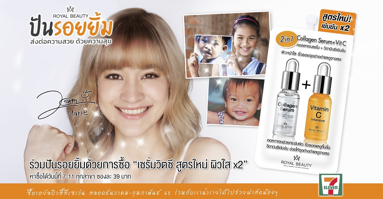 นอกจากนี้ตลอด 2 เดือน ที่ผ่านมา รอยัล บิวตี้ นำรายได้ส่วนหนึ่งจากยอดขายในเซเว่นอีเลฟเว่นไปผ่าตัดเด็กปากแหว่ง เพดานโหว่
