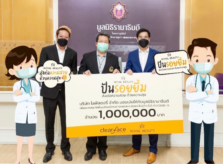 คุณเฉลิมพงษ์กล่าวเพิ่มเติมว่า “ไม่เพียงแจกและแบ่งปันข้าวของที่จำเป็นในการดูแลตัวเองให้ปลอดโควิด-19 แต่รอยัล บิวตี้ ยังบริจาคเงิน 1 ล้านบาท ให้กับมูลนิธิรามาธิบดี เพื่อช่วยสมทบทุนซื้อเครื่องออกซิเจน เครื่องฟอกเลือด แม้จะไม่ใช่เงินจำนวนมาก แต่เราภูมิใจที่ได้ทำเต็มที่เท่าที่เราทำไหว และด้วยความตั้งใจที่อยากจะช่วยเหลือสังคมจริง ๆ”