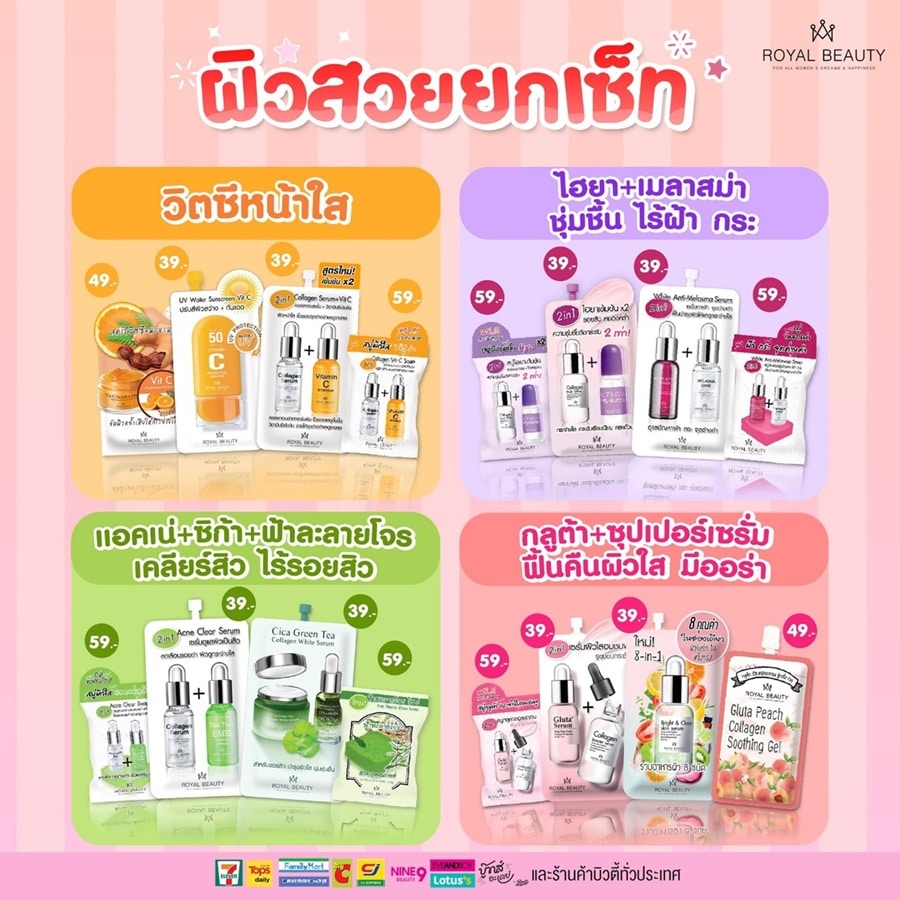 หากใครที่ใช้บริการเซเว่นอีเลฟเว่นอยู่บ่อยครั้ง จะสังเกตได้ไม่ยากว่าหนึ่งในสินค้าที่กินพื้นที่ชั้นวางมากที่สุดก็คือ “ครีมซอง” ที่เรียงรายบนเชล์ฟแน่นขนัดไปหมด โดยมีหนึ่งในเจ้าตลาดและเป็นผู้บุกเบิกตลาดครีมซองให้กลายมาเป็นดาวเด่นได้ก็คือ “Royal Beauty” ที่มียอดขายกว่า 10 ล้านชิ้นต่อปี นำเสนอผลิตภัณฑ์ครีมซองที่หลากหลาย และหลายตัวติดอันดับครีมซองยอดนิยม ขณะเดียวกันยังสร้างสรรค์เรื่องราวดี ๆ ให้กับสังคม ด้วยการสานต่อแคมเปญ “ปันรอยยิ้ม” อย่างต่อเนื่องอีกด้วย