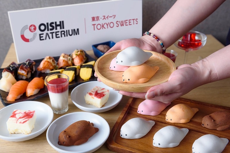 ครั้งแรกของการผนึกกำลังร่วมกันระหว่าง “โออิชิ อีทเทอเรียม X โตเกียว สวีท : อุ๋ง ๆ โมจิแมวน้ำ และโมจิมินิ เสิร์ฟแบบไม่อั้น @ โออิชิ อีทเทอเรียม” ภายใต้โพรเจกต์สุดคิวท์ ที่มุ่งยกระดับไลน์บุฟเฟต์ และเมนูอาหารคาว – หวาน ให้แปลกใหม่ หลากหลาย และพิเศษกว่าเดิม เชิญพบกับขนมญี่ปุ่น ที่โด่งดังในเรื่องของความน่ารัก สุดอร่อย นำโดยโมจิแมวน้ำ เนื้อเนียน นุ่มหนึบ ตามแบบฉบับโมจิญี่ปุ่นแท้ แท็กทีมมากับโมจิมินิ หลากรส หลายไส้ จัดเต็มถึง 4 รสชาติยอดนิยม ได้แก่ รสถั่วแดง สูตรต้นตำรับ (ชิ้นสีขาว), รสสตรอว์เบอร์รี (ชิ้นสีชมพู), รสเมลอน (ชิ้นสีส้ม) และ รสช็อกโกแลต โดยพร้อมให้บริการอย่างเต็มที่ เพิ่มเติมจากเมนูมาตรฐานอื่น ๆ เรียกได้ว่า อร่อยครบ…ตบท้ายมื้ออาหารอย่างลงตัวสุด ๆ หรือจะจับคู่รับประทานกับชา – กาแฟ ไอศกรีม คากิโกริ (น้ำแข็งใสเกล็ดหิมะ) ฯลฯ ก็ยิ่งเพลิดเพลินไปอีก