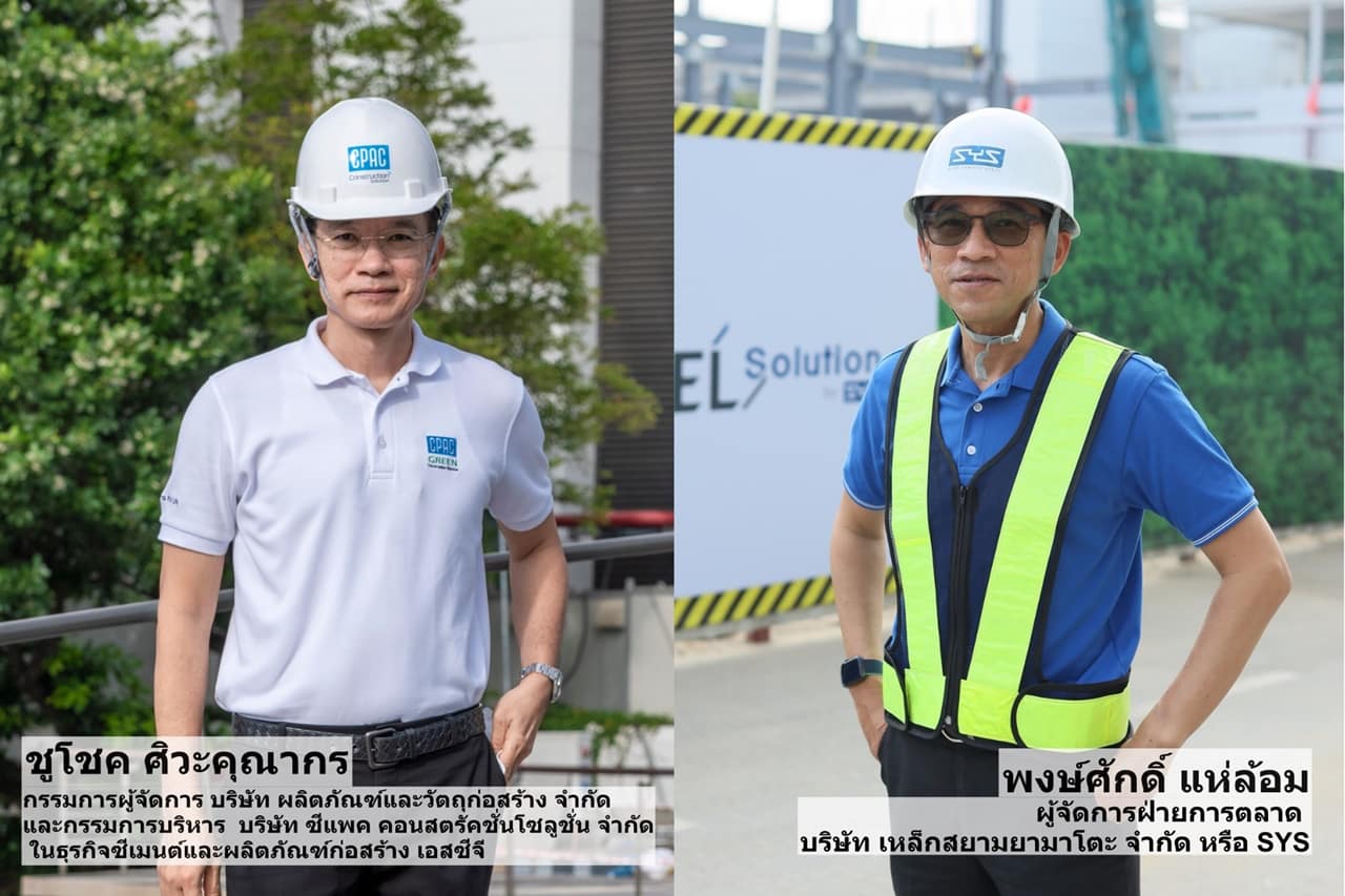 นายชูโชค ศิวะคุณากร กรรมการผู้จัดการ บริษัท ผลิตภัณฑ์และวัตถุก่อสร้าง จำกัด และกรรมการบริหาร บริษัท ซีแพค คอนสตรัคชั่นโซลูชั่น จำกัด ในธุรกิจซีเมนต์และผลิตภัณฑ์ก่อสร้าง เอสซีจี เผยว่า ซีแพค กรีน โซลูชัน มีนโยบายที่ต้องการจะยกระดับการก่อสร้างในประเทศไทยให้มีความเป็นมิตรกับสิ่งแวดล้อมมากขึ้น ด้วยการใช้นวัตกรรมการก่อสร้าง Smart Construction มุ่งเน้นการลดทรัพยากรสิ้นเปลือง ลดฝุ่น ลดความเสี่ยงในการทำงาน ขณะเดียวกันก็เป็นการเพิ่มประสิทธิภาพในการทำงานได้อย่างแม่นยำ โดยการนำเทคโนโลยีการก่อสร้าง (Digital & Construction Technology) ผสานการทำงานรูปแบบ Modular Construction ที่นำเข้ามาใช้ตั้งแต่ขั้นตอนการออกแบบไปจนถึงกระบวนการก่อสร้างจริง เน้นผลิตแต่ละ Module มาจากโรงงาน (Off-site Construction) มาติดตั้งในพื้นที่ก่อสร้าง ซึ่งได้ร่วมมือกับ SYS นำเทคโนโลยี BIM มาใช้ในการออกแบบและบริหารงานก่อสร้างผสานการทำงานโครงสร้างเหล็กแบบชิ้นส่วนสำเร็จรูป(Prefabricated Steel) โดยการผลิตชิ้นงานเหล็กมาจากโรงงานและยกมาติดตั้งที่หน้างานด้วยระบบ Bolted Connection ลดการทำงานในไซต์งาน (On-site) ทำให้งานก่อสร้างมีความรวดเร็ว แม่นยำ อีกทั้งยังช่วยลดระยะเวลาการทำงาน ลดจำนวนคนงาน และลดการสูญเสีย มีความปลอดภัยและเป็นมิตรต่อสิ่งแวดล้อม