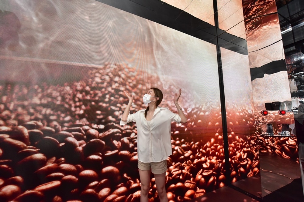 – โซนแรกกับ 4D Sensory Sampling เล่าเรื่องโปรดักท์และแบรนด์เนสกาแฟ ตั้งแต่การปลูกกาแฟจากสวน การผลิตด้วยเทคโนโลยีชั้นสูงเอกสิทธิ์ของเนสกาแฟ เพื่อกักเก็บกลิ่นเอาไว้ในตัวสินค้า จนมาเป็นสูตรที่ดีที่สุดของ เนสกาแฟ เบลนด์ แอนด์ บรู ริช อโรมา นอกจากนี้ยังได้ชิมกาแฟที่ผสานสัดส่วนใหม่ที่ลงตัว กลมกล่อมยิ่งขึ้น เข้ากันทุกมิติ จนกลายเป็นประสบการณ์ 4 มิติ ทั้งรูป รส กลิ่น เสียง กันตั้งแต่โซนแรกเลยนี่แหละ