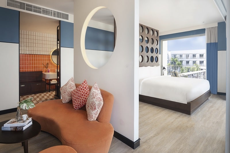 ห้องพักทุกห้องมีระเบียงให้แขกสามารถออกมาสูดอากาศบริสุทธิ์ และสามารถชมเห็นวิวสระว่ายน้ำ รองรับทั้งเตียง คิงไซส์ และ เตียงแฝด ฝักบัวแบบ rain shower โต๊ะสำหรับทำงาน สมาร์ททีวี และลำโพงระบบบลูทูธแบบพกพา
