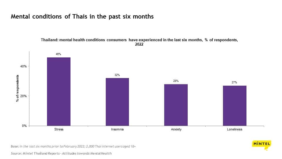 การระบาดของโควิด-19 ที่ยาวนานกว่า 2 ปี ถึงตอนนี้จะสร่างซาลง แต่ยังมียอดผู้เสียชีวิตและติดเชื้อใหม่รายวันอย่างต่อเนื่อง ซ้ำร้ายต้องมาเจอกับเศรษฐกิจซึมยาว ทำให้สะเทือนถึงสภาพจิตใจคนไทย โดย “มินเทล” (Mintel) บริษัทวิจัยด้านการตลาดระดับโลก ได้เผยผลวิจัยฉบับใหม่ ซึ่งสำรวจในช่วง 6 เดือน ก่อนเดือนกุมภาพันธ์ 2565 จากผู้ใช้อินเทอร์เน็ตชาวไทย 2,000 ราย อายุตั้งแต่ 18 ปีขึ้นไป พบคนไทยประมาณ 8 ใน 10 รายกำลังประสบปัญหา “สุขภาพจิต” โดยเฉพาะกลุ่ม “Gen Z” เป็นกลุ่มที่รู้สึก “โดดเดี่ยว” ที่สุด