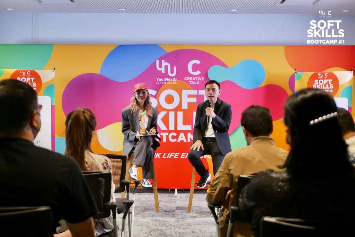 คุณสิทธิพงศ์ ศิริมาศเกษม CEO และ Founder RGB72 และ CREATIVE TALK ในฐานะพาร์ทเนอร์สำคัญของ YourNextU ที่เข้ามามีส่วนร่วมในการจัดงาน Soft Skill Bootcamp#1 ให้ประสบความสำเร็จ ต่อยอดภาพลักษณ์ใหม่ๆ ของการเรียนรู้ Soft Skills ให้ออกมาน่าสนใจและเข้าถึงบุคคลทั่วไปได้มากขึ้น กล่าวว่า “CREATIVE TALK มีความเชื่อเหมือนกับ YouNextU ในเรื่องความสำคัญและประโยชน์ของการเรียนรู้ ว่าสามารถช่วยพัฒนาและเพิ่มศักยภาพของคนในด้านต่างๆ ได้ โดยเฉพาะ Soft Skills ที่จำเป็นมากขึ้นในโลกปัจจุบัน เห็นได้จากรายงานของ Forbes ภายใต้หัวข้อ Top 16 Essential Soft Skills For The Future of Work กล่าวว่า AI เข้ามามีบทบาทสำคัญในที่ทำงานมากขึ้น โดยเฉพาะงานที่ใช้การทำซ้ำๆ แต่อย่างไรก็ตามทักษะมนุษย์ หรือ Soft Skills 16 ด้าน ที่คอมพิวเตอร์ไม่สามารถเข้ามาแทนที่ได้ ยังคงมีความสำคัญต่อชีวิตการทำงาน อาทิ Critical Thinking, Emotional Intelligence and Empathy, Creativity, Collaboration and Teamwork หรือ Interpersonal Communication Skills เป็นต้น”