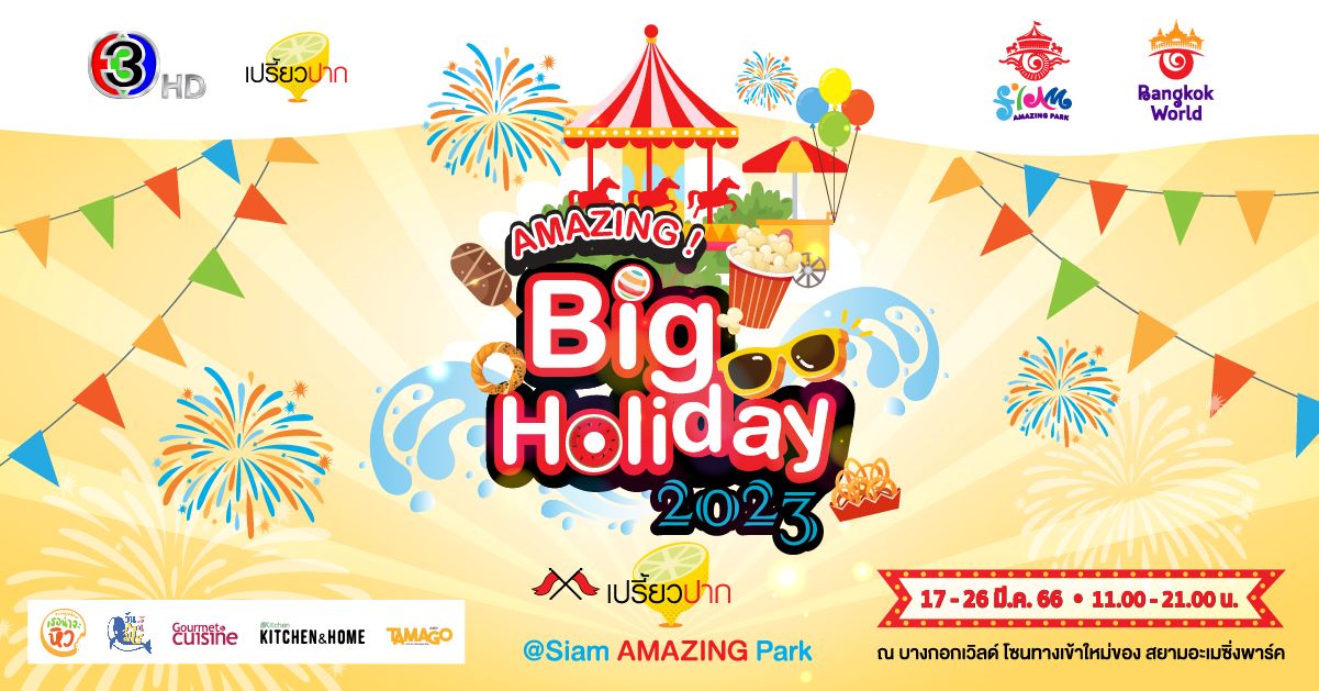 พลาดไม่ได้! เทศกาลความสนุกครบรสรวมไว้ที่นี่ที่เดียว ไปสนุกสุดฟินกันได้ที่งาน “AMAZING Big Holiday 2023 x เปรี้ยวปาก @SiamAMAZINGPark” วันที่ 17-26 มีนาคม 2566 เวลา 11.00-21.00 น. ณ บางกอกเวิลด์ โซนทางเข้าใหม่ของสยามอะเมซิ่งพาร์ค