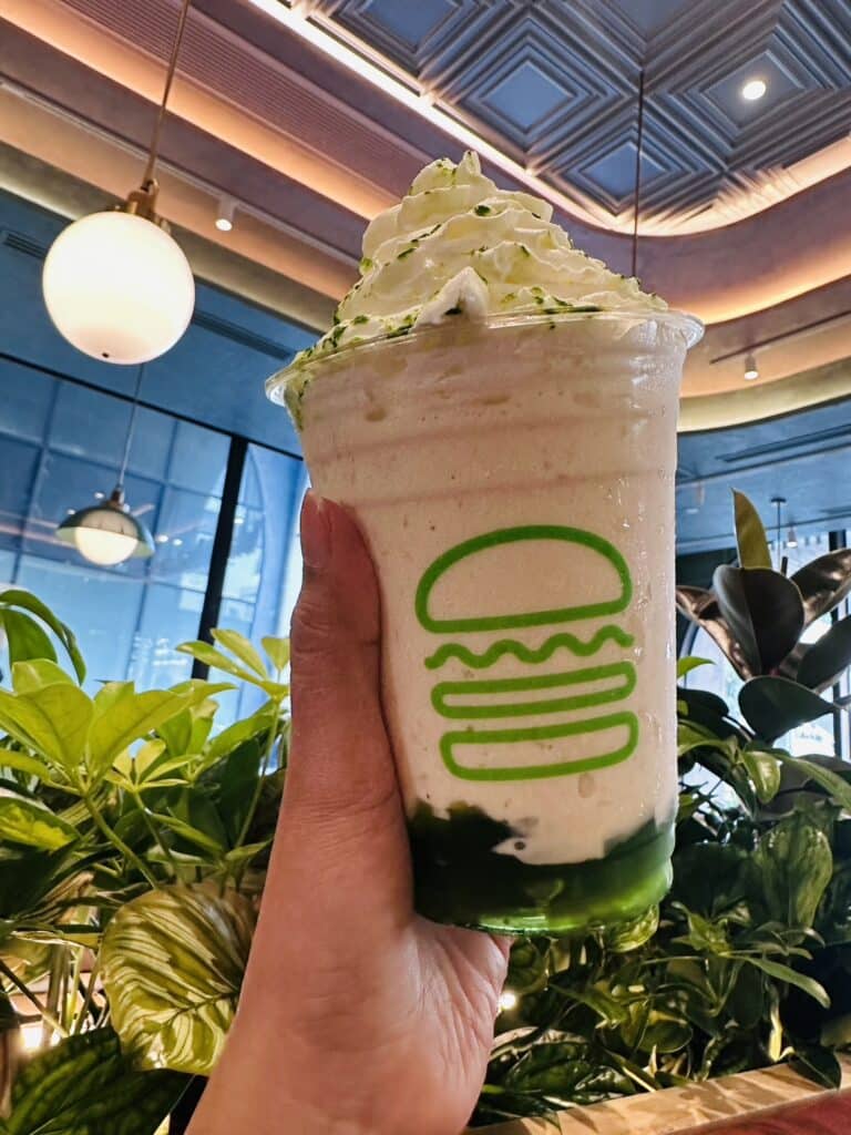 7. ไฮไลต์สุดพิเศษของหวานที่ได้รับแรงบันดาลใจจากอาหารไทย นอกจากเมนูเด็ดส่งตรงจากอเมริกาแล้ว Shake Shack ยังเอาใจสายหวานชาวไทยด้วยการเปิดตัวเมนูของหวานแบบผสมฟิวชั่นสไตล์ไทย Thailand Exclusive คิดค้นพิเศษเฉพาะประเทศไทย ไม่ว่าจะเป็น มิลค์เชคข้าวเหนียวเจลลีใบเตย (Pandan Sticky Rice Shake) ที่ได้รับแรงบันดาลใจมาจากข้าวเหนียวแก้วใบเตย ส่วนผสมลงตัวระหว่างข้าวเหนียวมูน เจลลี่ใบเตย นำมาปั่นรวมกัน จนได้มิลค์เชครสชาติหวานนุ่ม บอกเลยว่าเด็ด สนนราคาแก้วละ 230 บาท
