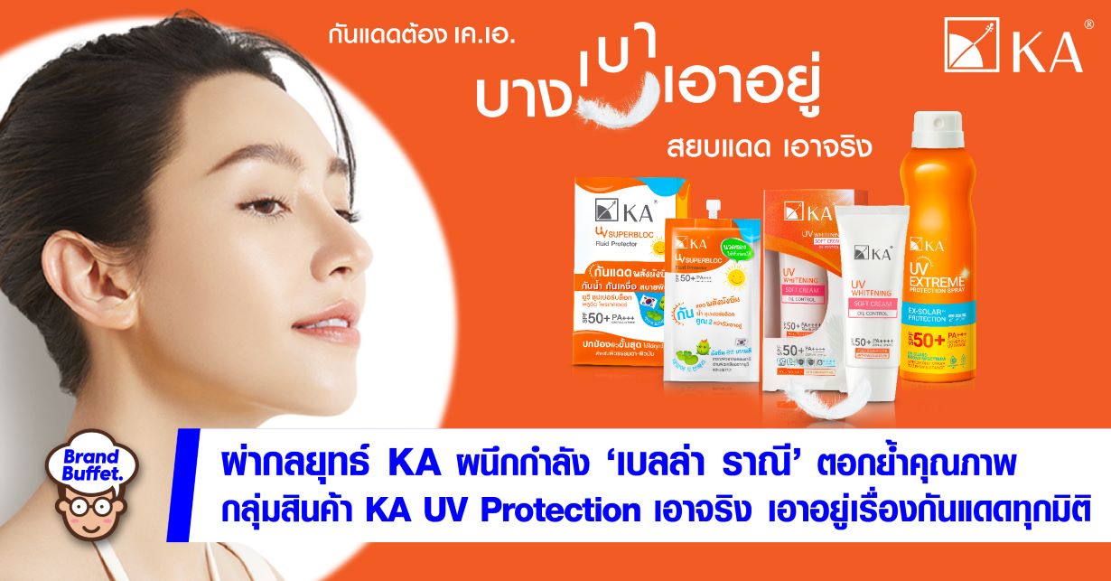สำหรับแคมเปญโฆษณาล่าสุดเราจึงนำมุมมองของผู้บริโภคที่มองว่า KA เป็นแบรนด์ที่มีความจริงใจมานำเสนอ และเลือกเบลล่า ราณี เป็นพรีเซนเตอร์อีกครั้ง เพราะมีความเรียล จริงใจ เป็นกันเอง และขี้เล่น แต่ทำงานจริง จึงมั่นใจว่าจะช่วยถ่ายทอดคุณสมบัติของผลิตภัณฑ์ต่าง ๆ ทั้ง 3 ผลิตภัณฑ์ในกลุ่ม KA UV Protection ในแคมเปญโฆษณาชุดล่าสุดนี้ที่นำเสนอภายใต้แนวคิด “บางเบา แต่เอาอยู่ ตอกย้ำความเอาจริง เอาอยู่เรื่องกันแดดทุกมิติ“ ได้เป็นอย่างดี โดยผลิตภัณฑ์กันแดดที่เป็นตัวชูโรงคือ KA UV Whitening Soft Cream SPF50+ PA++++ ที่สยบแดดเอาจริง บางเบา เอาอยู่ เพราะเพิ่มประสิทธิภาพกันแดดด้วย