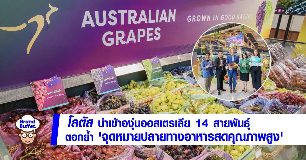 ล่าสุดโลตัส ได้ร่วมกับ สำนักงานการพาณิชย์และการลงทุนออสเตรเลีย (ออสเทรด) นำเข้าองุ่นออสเตรเลีย จัดกิจกรรม Australian Made and Grown ชูองุ่น 14 สายพันธุ์ที่คัดสรรจากแหล่งเพาะปลูกองุ่นที่ดีที่สุดในประเทศออสเตรเลีย ส่งตรงสู่ โลตัส ทุกสาขาทั่วประเทศและแพลตฟอร์มออนไลน์ Lotus’s SMART App ให้ลูกค้าเลือกซื้อองุ่นนำเข้าหลากหลายสายพันธุ์ในราคาที่เอื้อมถึง