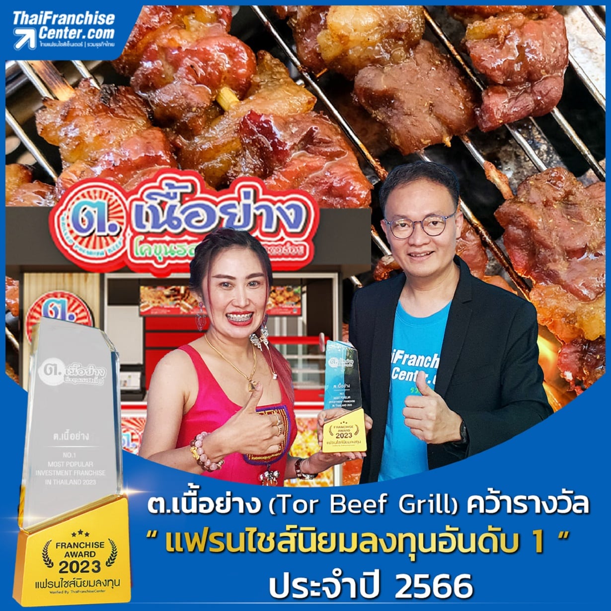 ThaiFranchiseCenter.com ในฐานะเป็นเว็บไซต์ที่รวบรวมธุรกิจแฟรนไชส์ที่ใหญ่ที่สุดในไทย จึงได้คัดสรรและนำเสนอแฟรนไชส์คุณภาพเพื่อเป็นข้อมูลให้คนที่สนใจสามารถเลือกลงทุนได้อย่างมีประสิทธิภาพ ล่าสุดเป็นแฟรนไชส์ ต.เนื้อย่างที่ได้รางวัล “Most Popular Investment Franchise in Thailand 2023” แฟรนไชส์ยอดนิยมลงทุน ประจำปี 2566 จากเว็บไซต์ไทยแฟรนไชส์เซ็นเตอร์