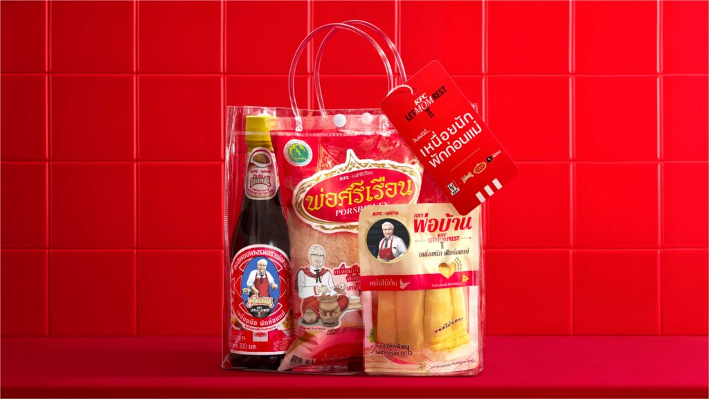วันแม่ปีนี้ KFC แบรนด์ไก่ทอด “ตัวพ่อ” ขอสร้างเทรนด์ใหม่ บอกรักแม่ ด้วยการให้แม่พัก พ่อทำแทนให้ ผ่านแคมเปญที่ใครเห็นก็ต้องร้องงุ้ยยย อย่าง “KFC Let Mom Rest เหนื่อยนัก พักก่อนแม่” ที่ผู้พันแซนเดอร์ส ขอประกาศตัวเป็นตัวแทนพ่อบ้าน ทำหน้าที่แทนตัวแม่ทั้งหลาย ทั้งงานบ้าน งานครัว งานแม่ศรีเรือนต่างๆ และชวนให้ทุกครอบครัวแบ่งเบาภาระทำหน้าที่แทนแม่ ตอบแทนทุกความเหนื่อยที่แม่ต้องเจอ ให้แม่ได้ใช้เวลาพักกินไก่ทอดแบบชิลๆ แถมยังมีกิมมิคสุดปั่น จุดกระแสวันแม่มิติใหม่นี้ ผ่านการคอลแลบกับ “แบรนด์ตัวแม่” โดยการนำ “ผู้พันแซนเดอร์ส” ตัวแทนพ่อบ้าน เข้าไปแทนเหล่าตัวแม่ในโลโก้ผลิตภัณฑ์ต่างๆ เปลี่ยนชื่อแบรนด์จากคำว่า “แม่” เป็นคำว่า “พ่อ” ไม่ว่าจะเป็น ซอสหอยนางรมตราพ่อครัว ข้าวตราพ่อศรีเรือน หรือ หน่อไม้ต้มในน้ำเกลือตราพ่อบ้าน และยังจัดทำเป็นของจริงสุดลิมิเต็ด KFC Let Mom Rest Gift Set จัดกิจกรรมแจกฟรีด้วย จนกลายเป็นกระแสไวรัลแคมเปญสุดปั่น ได้ใจบรรดาเหล่าตัวแม่แบบสุด