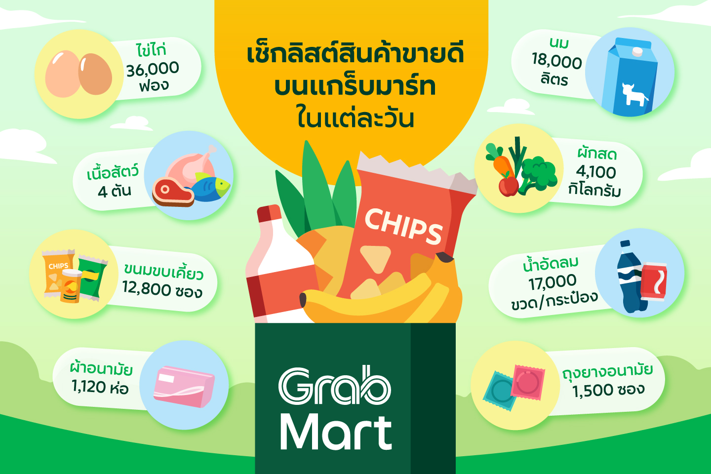 o แต่ละวันมียอดเฉลี่ยในการซื้อไข่ไก่บนแกร็บมาร์ทสูงถึง 36,000 ฟอง และนมสดสูงถึง 18,000 ลิตร