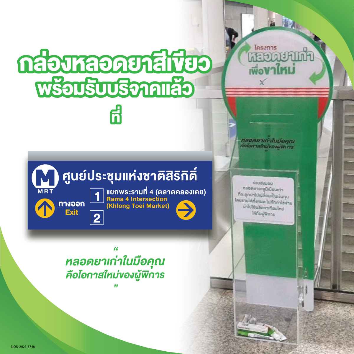 ขอเชิญชวนทุกคนมาสร้างโอกาสให้กับผู้พิการ เพียงแค่นำหลอดยาอะลูมิเนียมที่เหลือใช้ หรือใช้หมดแล้ว นำมาหย่อนบนกล่องหลอดสีเขียว (ตามภาพ) กล่องรับบริจาคนี้จะกระจายอยู่ทั่วประเทศ ทั้งในกรุงเทพฯ และปริมณฑล ภายใต้ร้านขายยาที่เข้าร่วมโครงการ เพื่อนำหลอดอะลูมิเนียมเก่าเหล่านั้นมาเปลี่ยนเป็นเงินทุนในการผลิตขาเทียมให้ผู้พิการ โดยรายได้ทั้งหมดไม่หักค่าใช้จ่ายใดๆ ทั้งสิ้น เพราะเราอยากให้ผู้พิการได้มีโอกาสใช้ชีวิตเหมือนพวกเราทุกคนในสังคมอีกครั้ง