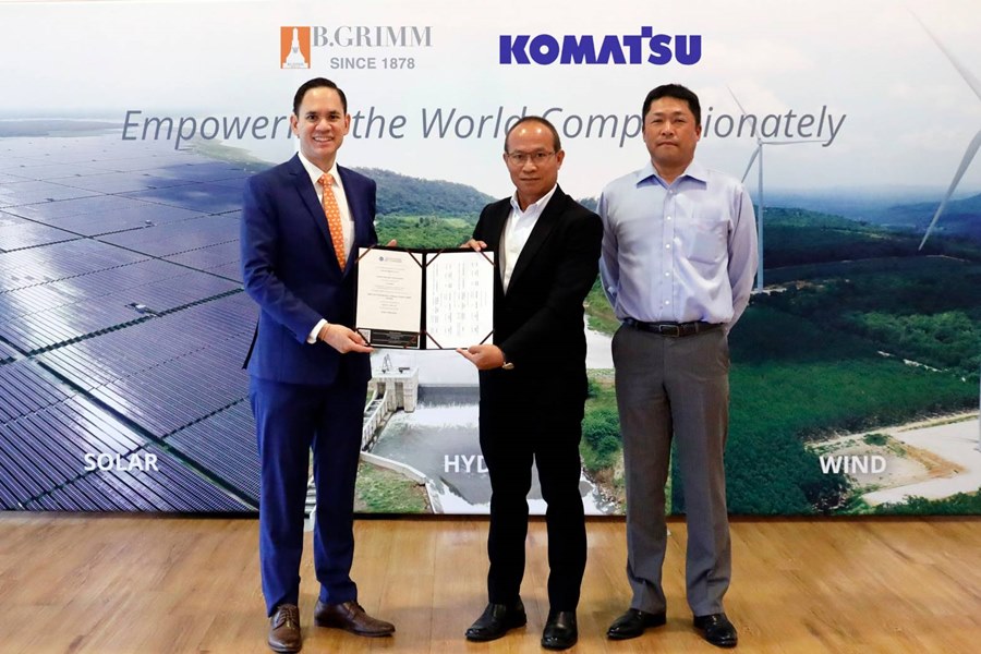 นายนพเดช กรรณสูต รองกรรมการผู้จัดการใหญ่อาวุโส – การลงทุน นวัตกรรม และความยั่งยืน บริษัท บี.กริม เพาเวอร์ จำกัด (มหาชน) หรือ BGRIM ผู้ผลิตและจำหน่ายไฟฟ้าเอกชนชั้นนำของประเทศไทย และ นายเจริญ เรืองวิลัย กรรมการผู้จัดการใหญ่ บริษัท บางกอกโคมัตสุ จำกัด โรงงานประกอบรถขุดตักไฮดรอลิคและผลิตชิ้นส่วนอุปกรณ์รถขุดตัดไฮดรอลิค ยี่ห้อโคมัตสุ โคมัตสุจากประเทศญี่ปุ่นเป็นรายแรกของโลก ทำการซื้อขายใบรับรองการผลิตพลังงานหมุนเวียน (Renewable Energy Certificate: REC) เพื่อร่วมส่งเสริมการผลิตไฟฟ้าด้วยพลังงานหมุนเวียนที่เป็นมิตรต่อสิ่งแวดล้อม ช่วยลดการปล่อยก๊าซเรือนกระจกและคาร์บอนไดออกไซด์ พร้อมขับเคลื่อนประเทศไทยมุ่งสู่สังคมคาร์บอนต่ำ โดยมี) มร.ฮิโรอะคิ ทาคาฮาชิ รองกรรมการผู้จัดการใหญ่ บริษัท บางกอกโคมัตสุ จำกัด พร้อมผู้บริหารและทีมงานจากสององค์กรร่วมเป็นสักขีพยาน ณ บริษัท บี.กริม เพาเวอร์ จำกัด (มหาชน) สำนักงานใหญ่ ถนนกรุงเทพกรีฑา