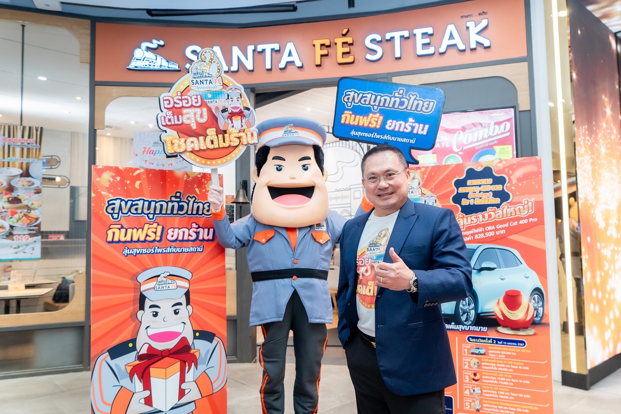 ซานตาเฟ่ สเต๊ก ผู้นำร้านอาหารประเภทสเต๊กที่ครองใจผู้บริโภคมายาวนาน เสิร์ฟความสุขด้วยเมนูสเต๊ก และเมนูอร่อยหลากหลาย เติมเต็มความสุขและคืนกำไรให้กับลูกค้า ฉลองครบรอบ 20 ปี จัดแคมเปญ “อร่อยเต็มสุข โชคเต็มร้าน” มอบรางวัลใหญ่ “รถยนต์ไฟฟ้า ORA Good Cat 400 Pro” มูลค่า 828,500 บาท จำนวน 1 รางวัล รางวัลทานฟรีตลอดปี มูลค่า 480,000 บาท จำนวน 20 รางวัล สร้อยคอทองคำ มูลค่า 340,000 บาท จำนวน 20 รางวัล และ Santa Fe Gift Voucher มูลค่า 200,000 บาท จำนวน 200 รางวัล และรางวัลอื่นๆ อีก 600 รางวัล รวมมูลค่ากว่า 2 ล้านบาท เริ่มแล้ววันนี้จนถึง 31 ธันวาคม 2566 รับ 1 สิทธิ์ชิงโชคเมื่อรับประทานอาหารครบทุกๆ 450 บาท (หลังหักส่วนลด) จับรางวัล 2 ครั้ง ในวันที่ 15 ธันวาคม 2566 และวันที่ 15 มกราคม 2567