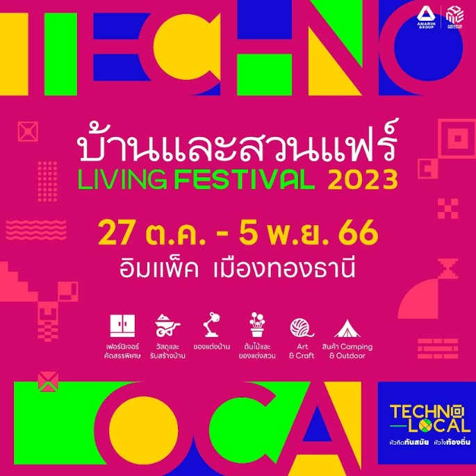 บริษัทอมรินทร์ คอร์เปอเรชั่นส์ จำกัด (มหาชน) จัดงานแฟร์ใหญ่ส่งท้ายปี บ้านและสวนแฟร์ Living Festival 2023 ระหว่างวันที่ 27 ตุลาคม – 5 พฤศจิกายน 2566 ณ อาคารชาเลนเจอร์ อิมแพ็ค เมืองทองธานี พร้อมนำประสบการณ์กว่า 24 ปี ในการจัดงานแฟร์ที่ดีที่สุดในประเทศและภูมิภาคอาเซียน สำหรับครั้งนี้จัดในแนวคิด “Techno – Local : หัวคิดทันสมัย หัวใจท้องถิ่น” เป็นการประยุกต์สิ่งที่มีในท้องถิ่นให้เข้ากับเทคโนโลยีและความรู้สมัยใหม่