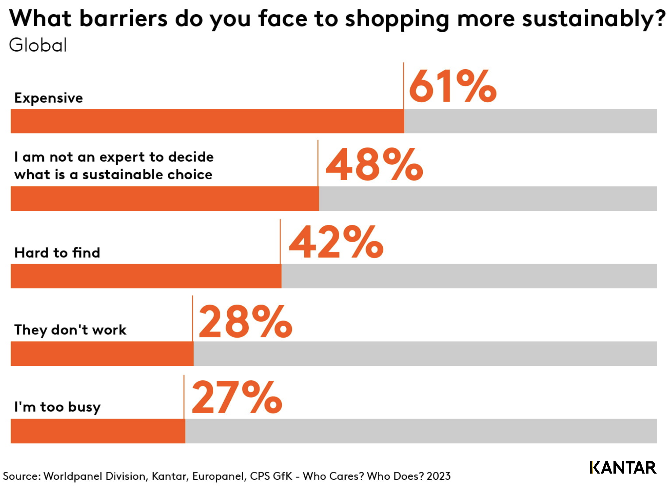 การรับรู้ว่าทางเลือกที่ยั่งยืนนั้นมีราคาแพงยังคงเป็นอุปสรรคสำคัญ โดย 60.9% ทั่วโลกมองว่าต้นทุนเป็นอุปสรรค