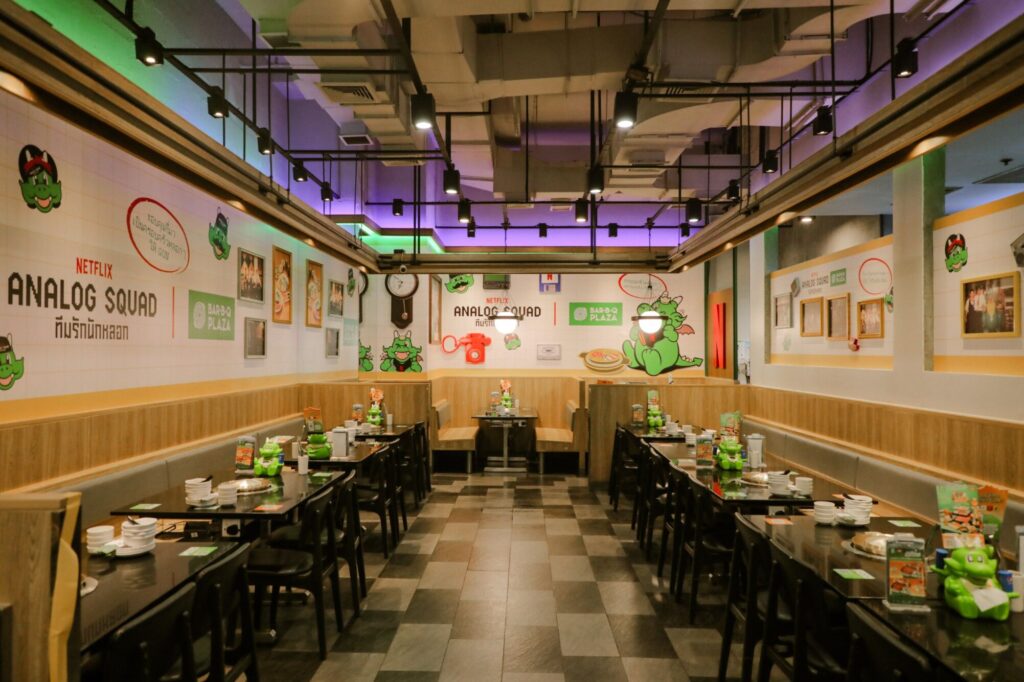 อีกประการคือการเชื่อมสู่ความเป็น Analog ตามคอนเซ็ปต์ของซีรี่ส์ ที่ต้องสามารถจับต้องได้ ทำให้เกิดเป็นไอเดียในการนำ Item ที่ผู้บริโภคนึกถึงในอดีตของบาร์บีคิวพลาซ่าที่มีการใช้งานจริงในยุค 90 กลับมาอีกครั้ง ด้วยการตกแต่งร้าน 3 สาขาได้แก่ สาขาเซ็นทรัลเวิลด์ สาขาสยามแสควร์วัน และสาขาพระราม 9 ย้อนยุคไปยังปี 90 ผ่านการตกแต่งและอุปกรณ์ ต่างๆภายในร้าน