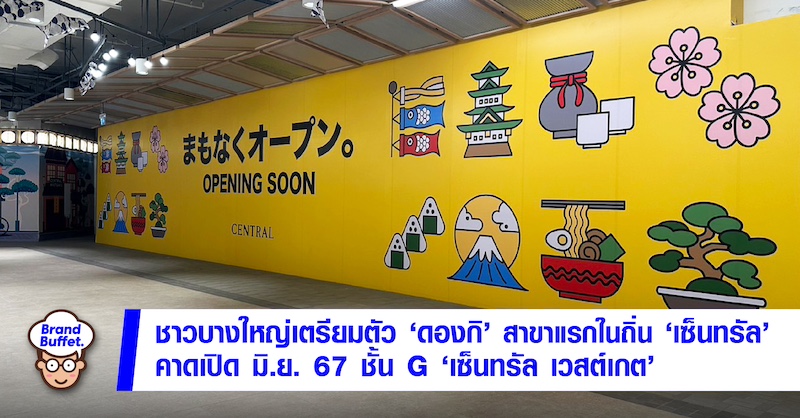 ช่วงนี้ใครผ่านไปผ่านมาบริเวณชั้น G ของศูนย์การค้าเซ็นทรัล เวสต์เกต คงได้เห็นพื้นที่รีเทลใหม่ที่ภายในกำลังตกแต่ง พร้อมติดภาษาญี่ปุ่น もうすぐオープン ที่แปลว่า “จะเปิดเร็วๆ นี้” และภาษาอังกฤษ Coming Soon เมื่อบวกกับลวดลาย ภูเขาไฟฟูจิ ราเมน ดอกซากุระ และปราสาทแบบญี่ปุ่น บนพื้นที่กั้นแล้ว และเมื่อจับใจความเนื้อหาทั้งหมดมารวมกันแล้ว BrandBuffet จึงสอบถามแหล่งข่าว พบว่ากำลังจะมีดองกิ ที่ “เซ็นทรัล” เป็นครั้งแรก ทำให้หลายคน (โดยเฉพาะในย่าน) ต่างตั้งตารอการเปิดตัวของพื้นที่ดังกล่าว