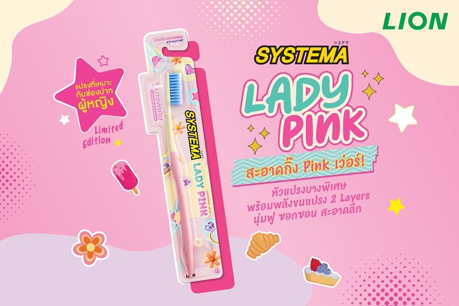 บริษัท ไลอ้อน (ประเทศไทย) จำกัด ผู้ผลิตและจำหน่ายสินค้าอุปโภคบริโภคเพื่อคนไทย มุ่งพัฒนาสินค้านวัตกรรม ตามแนวทางธุรกิจเพื่อนำความดีสู่สังคม และสร้างสุขภาวะที่ดีสู่ผู้บริโภค สังคม และสิ่งแวดล้อมมาอย่างต่อเนื่อง ชูกลยุทธ์การตลาด “Cute Marketing” ด้วยการเปิดโฉมใหม่แปรงสีฟัน “SYSTEMA Lady Pink” โดดเด่นตรงหัวแปรงบางพิเศษ 2 เลเยอร์ นุ่มฟู ซอกซอน ละเอียดอ่อนทุกสัมผัส ทำความสะอาดได้ทั่วถึงบริเวณฟันกรามลึกถึงซี่ในสุด ตอบโจทย์กลุ่มเป้าหมายสำหรับผู้หญิงที่ชื่นชอบความน่ารักโดยเฉพาะ