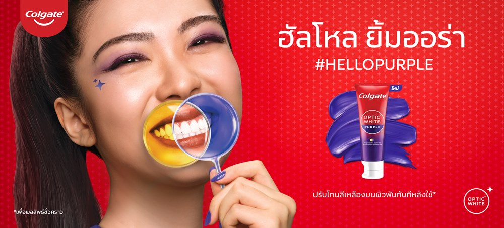 เฉดม่วงช่วยปรับโทนสีเหลืองบนผิวฟันทันทีหลังใช้^ ด้วยเทคโนโลยี Purple Brightener