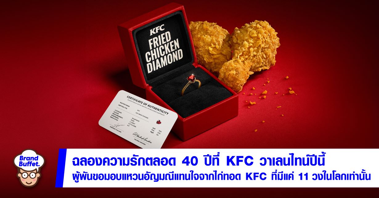 คุณซูเฮล ลิมบาดะ (Suhayl Limbada) ประธานบริหารฝ่ายการตลาด KFC ประเทศไทย บอกเล่าที่มาของแคมเปญนี้ว่า “KFC และทีมงานหน้าร้านทุกคนล้วนได้มีโอกาสเป็นส่วนหนึ่งในโมเม้นต์แห่งความรักที่เกิดขึ้นไม่ว่าจะที่ KFC สาขาไหนก็ตามในไทย จนกลายเป็นหนึ่งในสถานที่ของความทรงจำที่ติดอยู่ในใจคู่รักหลายๆ คู่ ในวันวาเลนไทน์ปีนี้ เราจึงขอมีส่วนร่วมมากยิ่งขึ้นด้วยการสร้างอีกหนึ่งความทรงจำแห่งรักนิรันดร์ด้วยสัญลักษณ์แทนใจและคำมั่นสัญญาแห่งรักที่จะมีให้กันและกันผ่านแหวน KFC Fried Chicken Ring”