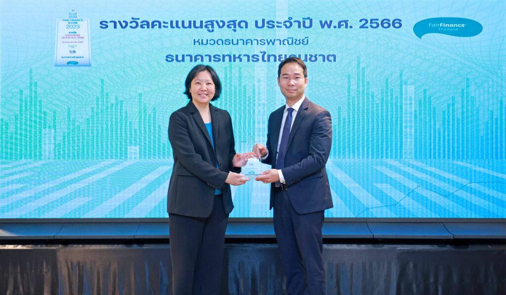 ทีเอ็มบีธนชาต หรือ ทีทีบี ตอกย้ำความสำเร็จเส้นทางสู่ “การธนาคารเพื่อความยั่งยืน” (Sustainable Banking) ครองอันดับหนึ่งด้วยคะแนนสูงสุดต่อเนื่องเป็นปีที่ 5 ในการประเมินนโยบายด้าน ESG ของธนาคาร จากการประเมินโดย Fair Finance Thailand ประจำปี 2566 ซึ่งมีความโดดเด่นในหมวดการคุ้มครองผู้บริโภคที่ธนาคารมีนโยบายจัดการข้อร้องเรียนของลูกค้าอย่างเป็นขั้นตอน และหมวดการขยายบริการทางการเงินที่ครอบคลุมเข้าถึงลูกค้าทุกกลุ่ม เพื่อเพิ่มความสะดวกสบายและเพื่อให้ลูกค้ามีชีวิตทางการเงินที่ดีขึ้น โดยมีนายนริศ อารักษ์สกุลวงศ์ ประธานกลุ่มกลยุทธ์องค์กรและดิจิทัล ทีเอ็มบีธนชาต เป็นผู้รับมอบรางวัลจากนางสาวสฤณี อาชวานันทกุล หัวหน้าคณะวิจัย แนวร่วมการเงินที่เป็นธรรมประเทศไทย และถือเป็นอีกหนึ่งรางวัลแห่งความภาคภูมิใจของธนาคารในการผลักดันให้ทุกภาคส่วนในองค์กรร่วมกันมุ่งมั่นสร้างการเติบโตที่ยั่งยืนอย่างสมดุลในทุกมิติ ตามกรอบ B+ESG ผสานธุรกิจและความยั่งยืนเป็นเนื้อเดียวกัน ณ โรงแรม S31 Sukhumvit Hotel เมื่อเร็ว ๆ นี้
