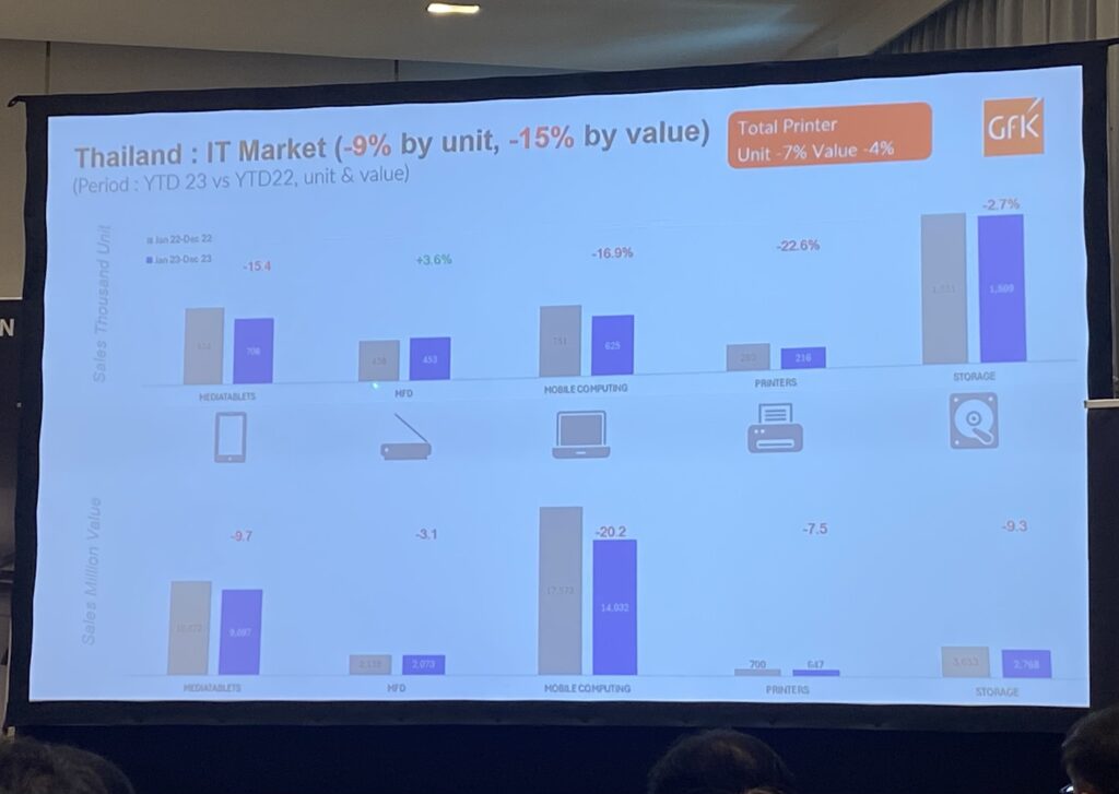ถ้าพูดถึงตลาดไอทีประเทศไทยในปี 2566 ต้องบอกว่าเป็นปีที่หนักหน่วงทีเดียว เพราะต้องพบเจอกับโจทย์ท้าทายรอบด้าน ทั้งภาวะเศรษฐกิจชะลอตัวฉุดกำลังซื้อ และการเบิกจ่ายของภาครัฐที่ล่าช้า ส่งผลให้ตลาดประสบสภาวะไม่เติบโต จากข้อมูลบริษัทวิจัยจีเอฟเค ระบุว่า ในปีที่ผ่านมาตลาดไอทีมีมูลค่า 28,618 ล้านบาท ติดลบถึง 15% ในเชิงมูลค่า และเมื่อมาดูที่ตลาดพรินเตอร์จะพบว่า มีมูลค่า 2,720 ล้านบาท ลดลง 4% ในเชิงมูลค่า แต่ “บริษัท เอปสัน (ประเทศไทย) จำกัด” กลับเติบโตอย่างสนใจ