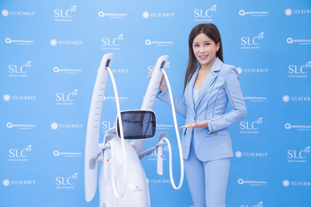 ในงานได้รับเกียรติจาก นายเซอค ซังยุบ ประธานเจ้าหน้าที่บริหาร และ นางสาว อุมาภรณ์ เมธเมาลี ผู้อำนวยการกลุ่มธุรกิจความงาม บริษัท ควอนตั้ม เฮลท์เเคร์ (ไทยเเลนด์) จำกัด ผู้นำเข้าและจำหน่ายเครื่องมือแพทย์ให้กับโรงพยาบาล สถาบันความงามชั้นนำของเมืองไทย และ นายซึง ฮัน เบค ประธานเจ้าหน้าที่บริหารคลาสซิส อิงค์ ประเทศเกาหลี ผู้ผลิตเครื่องมือทางการแพทย์ เดินทางมาร่วมงานได้ส่งมอบนวัตกรรมความงามสุดล้ำ Volnewmer จำนวน 30 เครื่องให้กับทาง SLC GROUP เพื่อนำไปให้บริการลูกค้าประจำสาขาต่าง ๆ ต่อไป