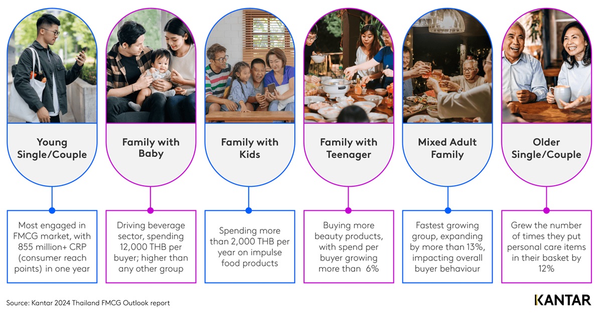 จากข้อมูลพฤติกรรมการจับจ่ายของผู้บริโภคกว่า 20 ปี ของ Kantar Worldpanel ในประเทศไทย สามารถแบ่งชีวิตผู้บริโภคออกเป็นช่วงๆ (Life-Stage) ได้ดังนี้