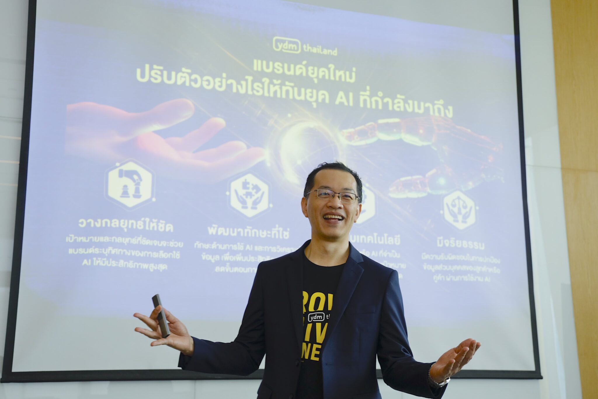 การมาถึงของ Gen AI กำลังทำให้วงการ Digital Marketing น่าจับตาขึ้นอีกขั้น เห็นได้จากกรณีศึกษาที่ค่าย YDM Thailand ได้นำมาเปิดเผย ถึงการสร้างชิ้นงานโฆษณา การผลิตข้อความโฆษณา และกลยุทธ์ในการใช้ KOL หลักร้อยคน เพื่อให้ได้งานที่ตรงกับกลุ่มลูกค้าเป้าหมาย โดยคุณธนพล ทรัพย์สมบูรณ์ ประธานกรรมการบริหาร บริษัท วายดีเอ็ม (ไทยแลนด์) จำกัด (YDM Thailand) กล่าวถึงการนำ Gen AI มาใช้ในมุมของ YDM Thailand ว่า Gen AI ไม่เพียงเพิ่มประสิทธิภาพให้กับคนทำงานได้อย่างมาก แต่ยังทำให้นักการตลาดมีเวลาเพิ่มขึ้น และนำเวลาเหล่านั้น ไปสร้างมูลค่าเพิ่มอื่น ๆ ให้กับองค์กร และบริษัทของลูกค้าได้อีกต่อ