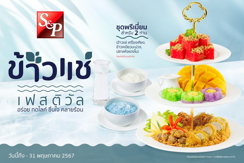 พิเศษ เอส แอนด์ พี จำหน่ายชุดข้าวแช่-ข้าวเหนียวมะม่วงน้ำดอกไม้เซตใหญ่ ราคาชุดละ 298 บาท สำหรับช่องทาง S&P Delivery 1344 จำหน่ายชุดข้าวแช่-ข้าวเหนียวมะม่วงน้ำดอกไม้เซตเล็ก ราคาชุดละ 198 บาท และ ชุดข้าวแช่ชุดเล็กเหมาะสำหรับรับประทานคนเดียว ราคา 148 บาท ข้าวแช่ เอส แอนด์ พี บรรจุในกล่องอาหารพร้อมทาน สะดวกรับประทานได้ทุกที่ อร่อย ชื่นใจ ได้ตั้งแต่วันนี้ถึงสิ้นเดือนพฤษภาคม นี้เท่านั้น ไม่อยากให้พลาดความอร่อยสดชื่นกันนะ