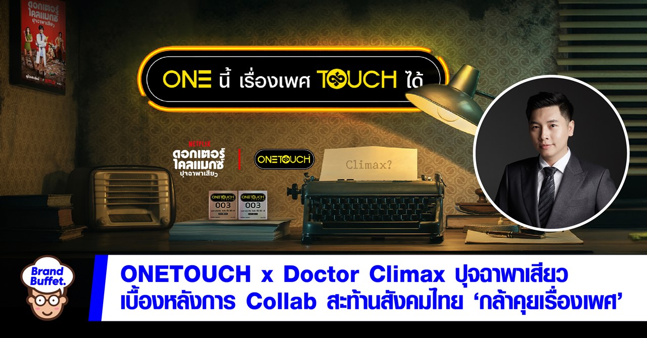 หลัง ‘Netflix’ เปิดตัว ‘ดอกเตอร์ไคลแมกซ์ ปุจฉาพาเสียว’ ซีรีส์เพศศึกษายุคสมัย ที่มีพล็อตเกิดในยุค 70 ที่ผู้คนยังเขิน ‘ไม่กล้าจะพูด’ ปัญหาทางเพศมากนัก แต่กลับมี ‘คุณหมอคอลัมนิสต์’ ผู้ลึกลับท่านหนึ่งอาสามาตอบทุกปัญหาความสัมพันธ์ทางเพศ ผ่านสารพัดเรื่องราวชวนซี๊ด ในซีรี่ส์ทั้ง 8 ตอน โดย Brand Buffet ได้มีโอกาสพูดคุยกับ คุณวรัญญู ดารารัตนโรจน์ ผู้จัดการทั่วไป บมจ.ไทยนิปปอนรับเบอร์อินดัสตรี้ ‘ONETOUCH’ แบรนด์ถุงยางอนามัยสัญชาติไทย ที่ได้มา Collab กับซีรีส์ดังเรื่องนี้
