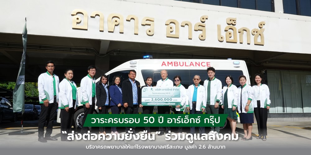 กลุ่มบริษัท อาร์เอ็กซ์ (R.X.Group) ผู้ผลิตและจัดจำหน่ายเครื่องมือแพทย์ เวชภัณฑ์ และยาแบรนด์แอร์เอ็กซ์ วันเกิร์ด เอเอ็มเค ยารักษาโรค รวมถึงเครื่องมือแพทย์ต่าง ๆ มากกว่า 40 แบรนด์ มุ่งมั่นช่วยเหลือสังคมด้วยการบริจาครถพยาบาลมูลค่า 2,600,000 บาท ให้แก่โรงพยาบาลศรีสะเกษ ซึ่งเป็นส่วนหนึ่งของการส่งเสริมคุณภาพชีวิตและเพิ่มความปลอดภัยในการรักษาพยาบาลสำหรับชุมชนในพื้นที่และสอดคล้องกับนโยบายแผนงานของทางบริษัทฯ