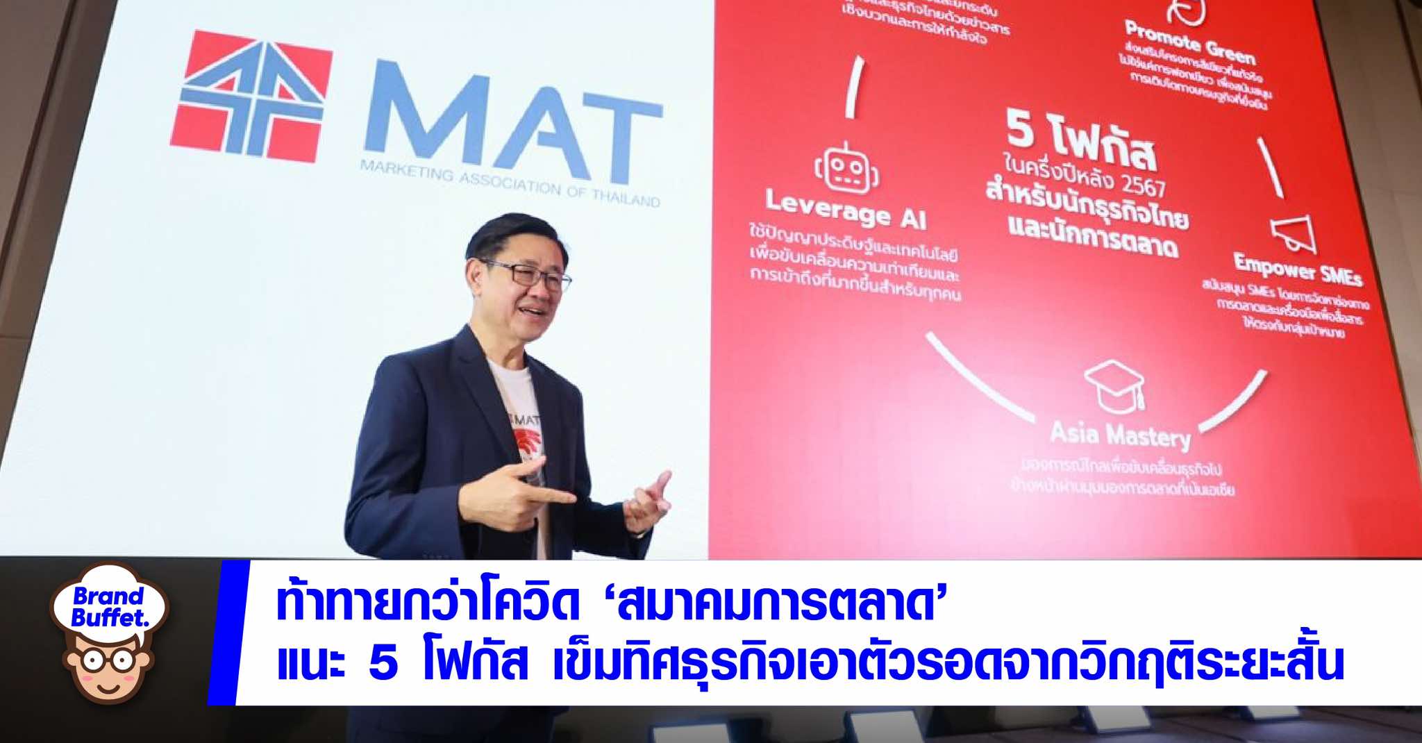 ในโอกาสการเข้ารับตำแหน่งของคณะกรรมการอำนวยการ สมาคมการตลาดแห่งประเทศไทย (MAT) ชุดใหม่วาระ ปี 2567-2569 ได้สรุปนโยบายและแนวทางการทำงานของสมาคมฯ เป็นยุทธศาสตร์สำคัญในการขับเคลื่อนประเทศ 5 ประการ