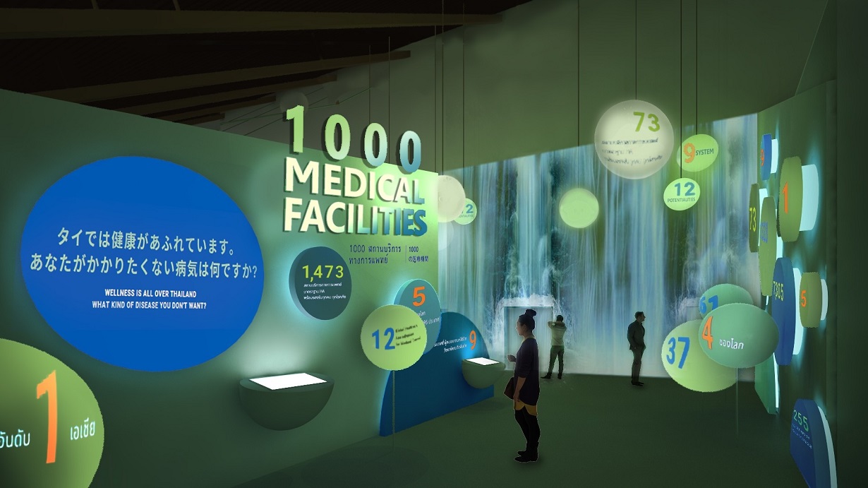 1,000 สถานบริการทางการเเพทย์ (Medical Facilities) กว่า 1,000 สถานบริการเพื่อสุขภาพที่ตอบรับคนทั้งโลก ครอบคลุมการส่งเสริมสุขภาพ รักษา ฟื้นฟูตลอดจนการพักผ่อนระยะยาวที่ได้มาตรฐานสากล เพื่อให้ประเทศไทยเป็นดินแดนเป้าหมายสุขภาพดีรองรับสังคมแห่งอนาคต สามารถเข้าถึงได้จากจำนวนสถานบริการทางการแพทย์ที่หลากหลาย ครอบคลุมการรักษาทุกโรคและได้มาตรฐานสากล เช่น JCI, HA ฯลฯ พร้อมแนะนำสถานที่ท่องเที่ยวเชิงส่งเสริมสุขภาพที่แสดงให้เห็นว่าธรรมชาติของไทยสามารถฟื้นฟูทั้งร่างกายเเละเยียวยาจิตใจได้ผ่าน Immersive Experience ของ “Thai Nature Theraphy”