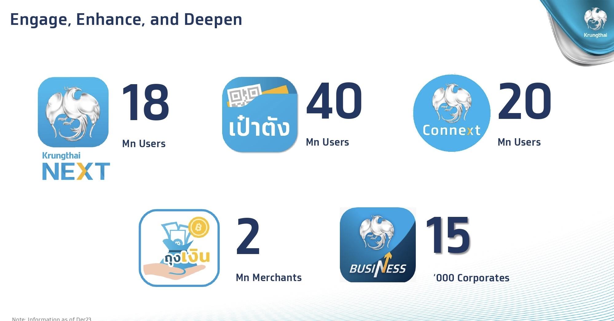 มากไปกว่านั้น Open Finance ก็ยังผลักดันไปพร้อมกับแอปพลิเคชันแบบปิดที่เปิดให้เพียงผู้ใช้งานของธนาคารเท่านั้นสามารถใช้งานได้อย่าง แอปฯ “กรุงไทย NEXT” ที่ปัจจุบันมีผู้ใช้งานอยู่ประมาณ 18 ล้านคน โดยประโยชน์ที่ได้ตามมาคือข้อมูลการจับจ่ายใช้สอยของประชาชนที่จะช่วยให้ธนาคารกรุงไทยสามารถปรับตัวเข้าสู่ยุคปัญญาประดิษฐ์ได้อย่างมีประสิทธิภาพ
