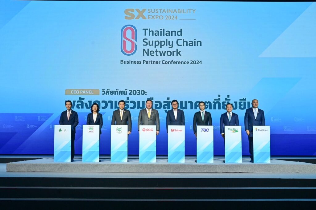 นายศุภชัย เจียรวนนท์ ประธานคณะผู้บริหาร บริษัท เครือเจริญโภคภัณฑ์ จำกัด (ซีพี) ร่วมเสนอวิสัยทัศนบนเวที “TSCN CEO PANEL: “วิสัยทัศน์ 2030: พลังความร่วมมือสู่อนาคตที่ยั่งยืน” ในงานมหกรรมความยั่งยืนที่ใหญ่ที่สุดในอาเซียน Sustainability Expo 2024 (SX 2024) ร่วมกับผู้บริหารองค์กรชั้นนำของประเทศ นายฐาปน สิริวัฒนภักดี ประธานเจ้าหน้าที่บริหาร บริษัท ไทยเบฟเวอเรจ จำกัด (มหาชน) นายธรรมศักดิ์ เศรษฐอุดม กรรมการผู้จัดการใหญ่ เอสซีจี และนายธีรพงศ์ จันศิริ ประธานเจ้าหน้าที่บริหาร บริษัท ไทยยูเนี่ยน กรุ๊ป จำกัด (มหาชน) โดยมีนายสุทธิชัย หยุ่น เป็นผู้ดำเนินรายการ เพื่อนำเสนอโมเดลการสร้างธุรกิจคู่ความยั่งยืน พร้อมเสนอแนะแนวทางการสร้างความร่วมมือเพื่อเดินหน้าสู่เป้าหมายการพัฒนายั่งยืนร่วมกัน ทั้งนี้ภายในงานมีผู้บริหารองค์กรชั้นนำ นักธุรกิจ เครือข่ายองค์กรด้านความยั่งยืนระดับประเทศ และระดับโลก ผู้ประกอบการหลายสาขาให้ความสนใจเข้าร่วมฟังกว่า 1,000 คน ณ SX Grand Plenary Hall ศูนย์การประชุมแห่งชาติสิริกิติ์