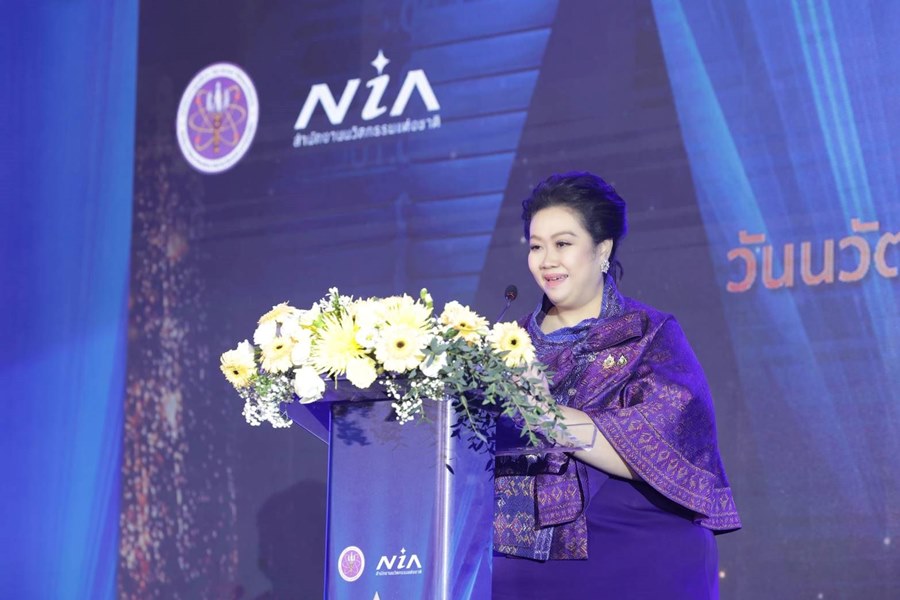 นางสาวศุภมาส อิศรภักดี รัฐมนตรีว่าการกระทรวงการอุดมศึกษา วิทยาศาสตร์ วิจัยและนวัตกรรม (อว.) กล่าวว่า “งานวันนวัตกรรมแห่งชาติ ถือเป็นงานสำคัญระดับประเทศที่ NIA จัดต่อเนื่องเป็นปีที่ 20 เพื่อเทิดพระเกียรติและรำลึกถึงพระมหากรุณาธิคุณ พระอัจฉริยภาพ และพระปรีชาสามารถด้านนวัตกรรมของพระบาทสมเด็จพระบรมชนกาธิเบศร มหาภูมิพล อดุลยเดชมหาราช บรมนาถบพิตร ในฐานะ ‘พระบิดาแห่งนวัตกรรมไทย’ ที่เปรียบเสมือน ‘ต้นแบบนวัตกร’ ของปวงชนชาวไทย จากโครงการอันเนื่องมาจากพระราชดำริ ‘แกล้งดิน’ ที่ศูนย์ศึกษาการพัฒนาพิกุลทองฯ จังหวัดนราธิวาส ที่สร้างประโยชน์คุณูปการอย่างหาที่สุดมิได้ โดยแนวพระราชดำริดังกล่าวเน้นการผสมผสานนวัตกรรมด้านเทคโนโลยีควบคู่กับนวัตกรรมด้านการบริหารจัดการจนได้วิธีที่เหมาะสมในการแก้ไขดินเปรี้ยว ซึ่งได้รับการยอมรับและเผยแพร่ไปปรับใช้ในระดับนานาชาติ ทั้งนี้ กระทรวง อว. ให้ความสำคัญกับการนำ ‘นวัตกรรม’ เข้ามาเป็นส่วนหนึ่งของการขับเคลื่อนประเทศให้เดินหน้าอย่างต่อเนื่องและมั่นคง โดยเฉพาะการพัฒนาทักษะและความสามารถด้านนวัตกรรมของ ‘กำลังคน’ ที่รองรับการเปลี่ยนแปลงในอุตสาหกรรมแห่งอนาคต ซึ่ง อว. มีแผนการสร้างและพัฒนากำลังคนที่ครอบคลุมทุกระดับ ตั้งแต่กำลังคนในภาคอุตสาหกรรม นักวิจัย รวมถึงการผลิตบัณฑิตระดับปริญญาตรี-โท-เอก นอกจากนี้ ยังมีนโยบายด้านการวิจัยและนวัตกรรมที่มุ่งเน้น ‘วิจัย-นวัตกรรมดี ตอบโจทย์ตรงความต้องการ’ เพื่อให้เกิดการนำนวัตกรรมไปขับเคลื่อนเศรษฐกิจและแก้ไขปัญหาสำคัญของประเทศในประเด็นสำคัญ ได้แก่ Go Green พอเพียง ความยั่งยืน ความเป็นกลางทางคาร์บอน พลังงานสะอาด เป็นมิตรกับสิ่งแวดล้อม เศรษฐกิจชีวภาพ เศรษฐกิจสร้างสรรค์ และเทคโนโลยีปัญญาประดิษฐ์ (AI) ผ่านการดำเนินงานในรูปแบบ ‘เอกชนนำ รัฐสนับสนุน’ ซึ่งจะใช้ความต้องการของบริษัทเอกชนผู้ใช้ประโยชน์เป็นตัวนำ (market-driven) ในการกำหนดทิศทางดำเนินงาน และให้หน่วยงานรัฐทั้งหน่วยงานวิจัยและมหาวิทยาลัยร่วมสนับสนุน สุดท้ายนี้ ต้องขอแสดงความยินดีกับผู้ได้รับ ‘รางวัลนวัตกรรม’ทุกท่านผู้เป็น ‘นวัตกร’ และ ‘องค์กรนวัตกรรม’ ที่เหมาะสมได้รับรางวัลทรงเกียรติ และถือเป็น ‘ต้นแบบ’ ที่จะช่วยกระตุ้นให้เกิดความตื่นตัวด้านนวัตกรรมในองค์กรทุกภาคส่วนของสังคมไทย และช่วยสร้างแรงบันดาลใจในการริเริ่มสร้างสรรค์ให้เกิดนวัตกรรมที่สร้างประโยชน์ต่อเศรษฐกิจ สังคมและสิ่งแวดล้อมของประเทศไทยต่อไป”