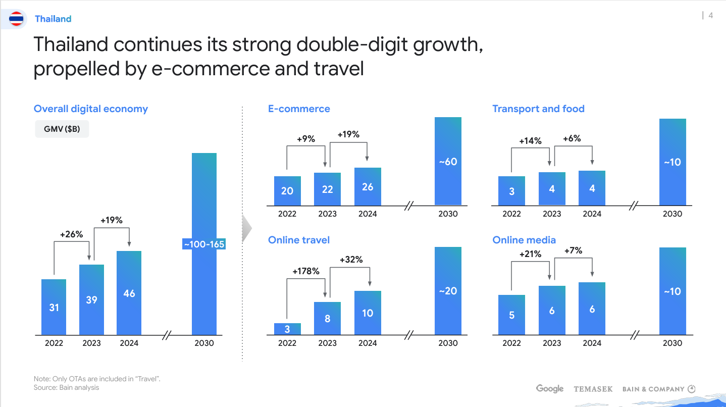 สำหรับรายงานเศรษฐกิจดิจิทัลเอเชียตะวันออกเฉียงใต้ฉบับล่าสุด (e-Conomy SEA 2024 Report) ซึ่งจัดทำโดย Google, Temasek และ Bain & Company ยังได้ระบุถึงความน่าสนใจของการเติบโตนี้เอาไว้ว่า
