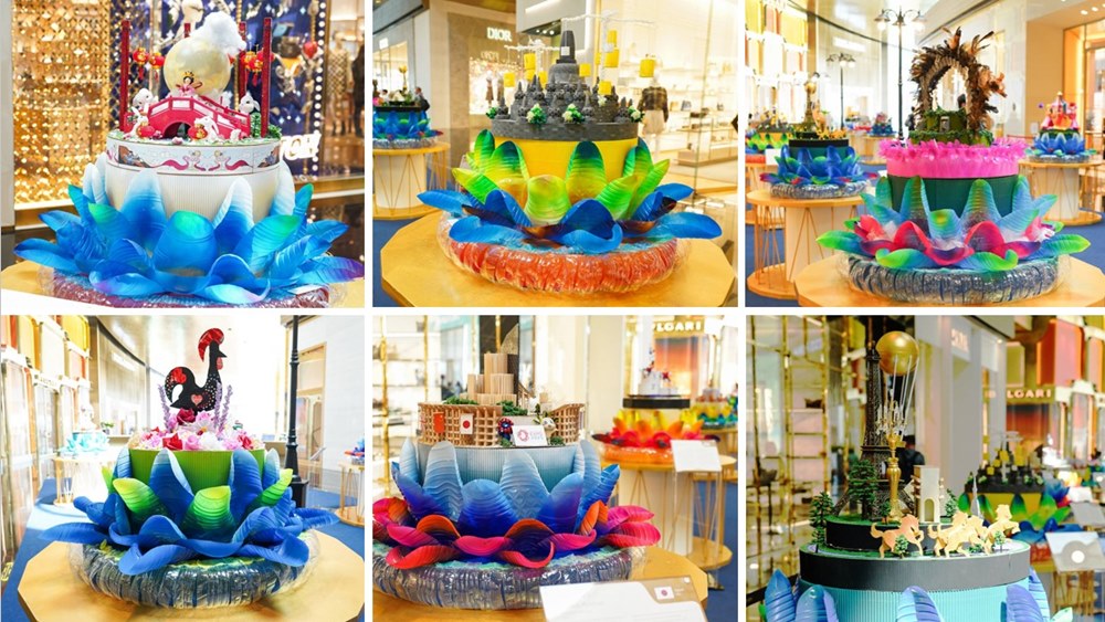 โดยความพิเศษของนิทรรศการกระทงนานาชาติในปีนี้ รังสรรค์ขึ้นภายใต้แนวคิด Upcycled Kratong หรือกระทงรักษ์โลก โดยนำแรงบันดาลใจจากงานเทศกาลของ 15 ประเทศ มาสร้างสรรค์เป็นกระทงไทยที่น่าตื่นตาตื่นใจด้วยฝีมือนิสิตนักศึกษาจากสถาบันต่างๆ โชว์ความงดงามบนฐานกระทงจากฝีมือของศิลปินนักทำโมเดลชาวไทย โดยเกือบทุกองค์ประกอบทำขึ้นจากการนำวัสดุเหลือใช้หลากหลายประเภทจากโครงการ 360 Waste Journey to Zero Waste ของไอคอนสยามมารีไซเคิลและอัพไซเคิล เพื่อเพิ่มมูลค่าวัสดุเหลือใช้ให้มีประโยชน์ ส่งต่อคุณค่า และลดผลกระทบต่อสิ่งแวดล้อมให้น้อยที่สุด นับเป็นการเปิดโอกาสให้ทุกคนได้เป็นส่วนหนึ่งในการร่วมรังสรรค์กระทงนานาชาติและรักษ์โลกไปพร้อมกัน ซึ่งในปีนี้สถานเอกอัครราชทูต 15 ประเทศ ได้นำสัญลักษณ์หรือเอกลักษณ์ของประเทศ และเรื่องราวเกี่ยวกับเทศกาลสำคัญและประเพณีอันมีคุณค่าทางวัฒนธรรมของแต่ละประเทศมานำเสนอ เพื่อเชื่อมโยงเข้ากับประเพณีลอยกระทงของประเทศไทย ทำให้ประชาชนผู้เข้าชมรู้สึกราวกับว่าได้ไปเยือนเทศกาลที่น่าตื่นตาของประเทศต่าง ๆ ด้วยตัวเอง อาทิ