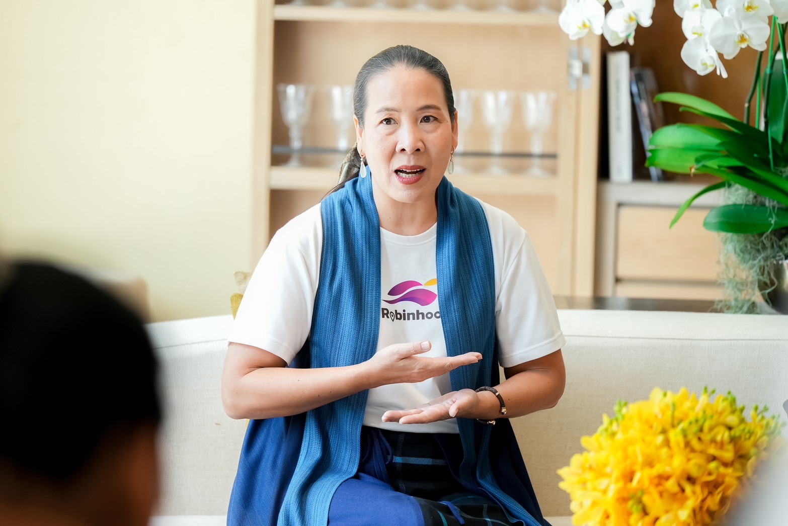 คุณมรกต ยิบอินซอย กรรมการผู้จัดการใหญ่ และประธานเจ้าหน้าที่บริหาร บริษัท ยิบอินซอย จำกัด และบริษัท เพอร์เพิล เวนเจอร์ส ผู้ให้บริการแอปพลิเคชัน โรบินฮู้ด (Robinhood)