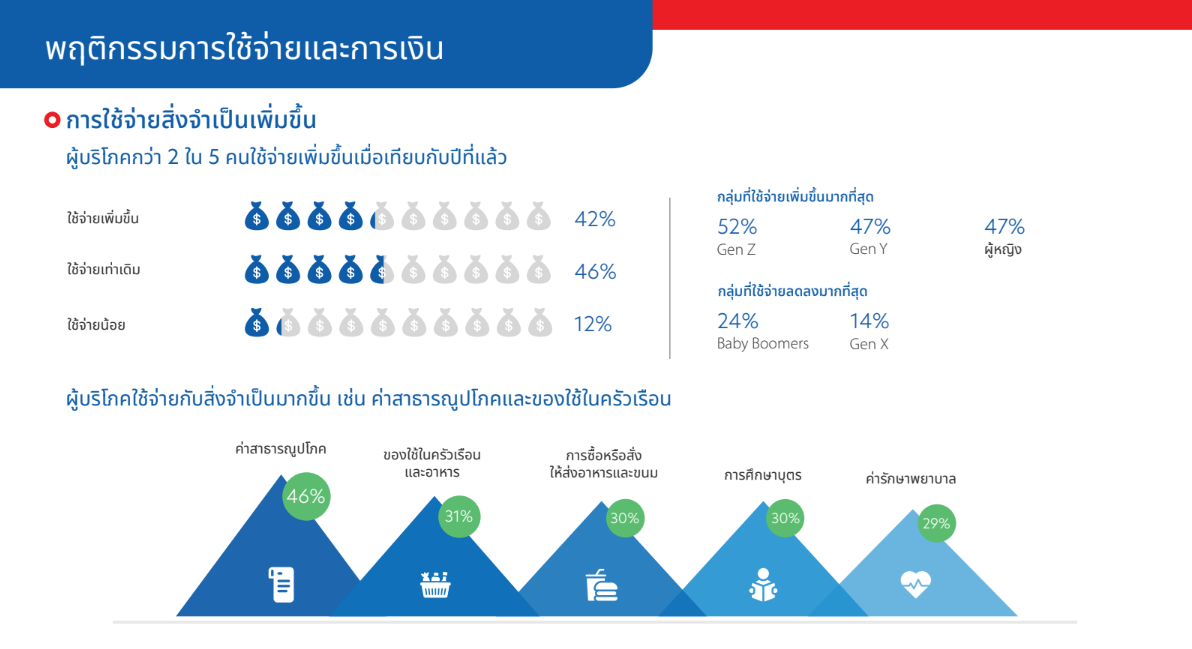 ส่วนการใช้จ่ายเพื่อซื้อประสบการณ์ที่เพิ่มขึ้นเห็นได้ชัดเจนโดยเฉพาะในผู้บริโภคกลุ่ม Gen Z (56%) และ Gen Y (45%)