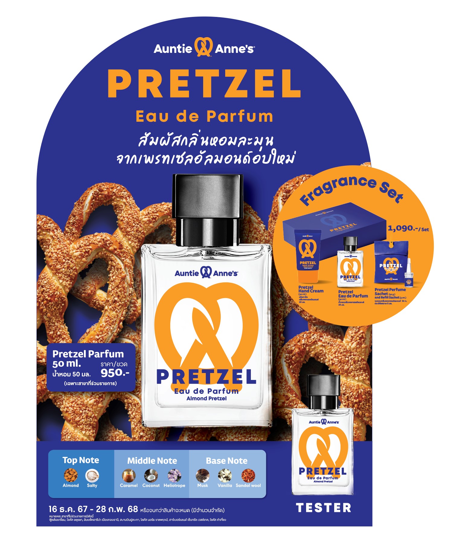 เรียกว่าใจสายเพรทเซลสุดๆ เมื่อ Auntie Anne’s เปิดตัวน้ำหอม “Almond Pretzel” (น้ำหอมกลิ่นเพรทเซล) ครั้งแรกในประเทศไทย! มาพร้อมกลิ่นหอมละมุนเหมือนอัลมอนด์เพรทเซลที่อบเสร็จใหม่ๆ