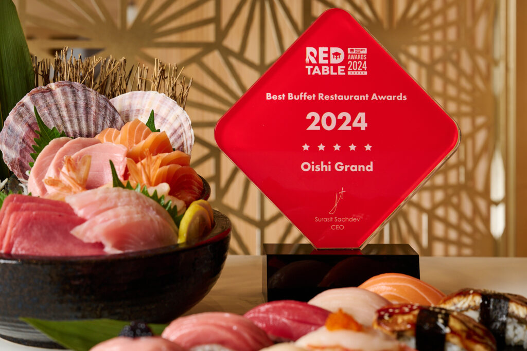 โออิชิ แกรนด์ (OISHI GRAND) โดย ศสัย ตังเดชะหิรัญ กรรมการผู้จัดการ บริษัท โออิชิ โฮลดิ้ง จำกัด เมื่อเร็ว ๆ นี้ เข้าร่วมงานประกาศรางวัล HUNGRY HUB RED TABLE AWARDS 2024 พร้อมรับมอบโล่รางวัลจาก สุรสิทธิ์ สัจจะเดว์ ประธานเจ้าหน้าที่บริหาร HUNGRY HUB ในโอกาสที่ โออิชิ แกรนด์ ได้รับการคัดเลือกให้ได้รับรางวัลด้านอาหารอันทรงเกียรติ คือ รางวัล BEST BUFFET RESTAURANT สำหรับเครือร้านอาหารที่รักษามาตรฐานสูงสุดได้อย่างต่อเนื่อง อันสะท้อนถึงความมุ่งมั่น ความคิดสร้างสรรค์ และศักยภาพในการสร้างประสบการณ์การรับประทานอาหารและการบริการอันยอดเยี่ยมแก่ผู้บริโภค